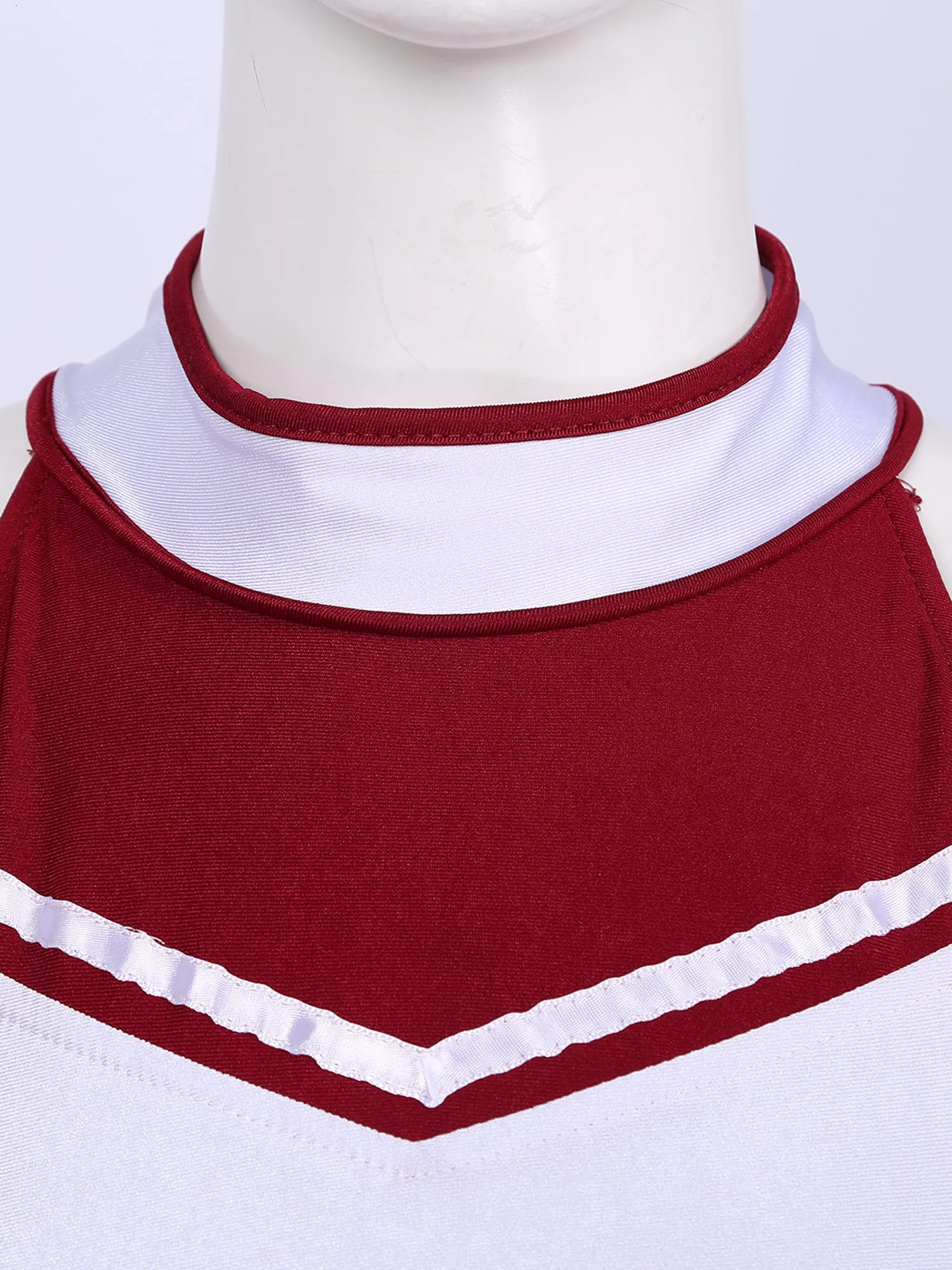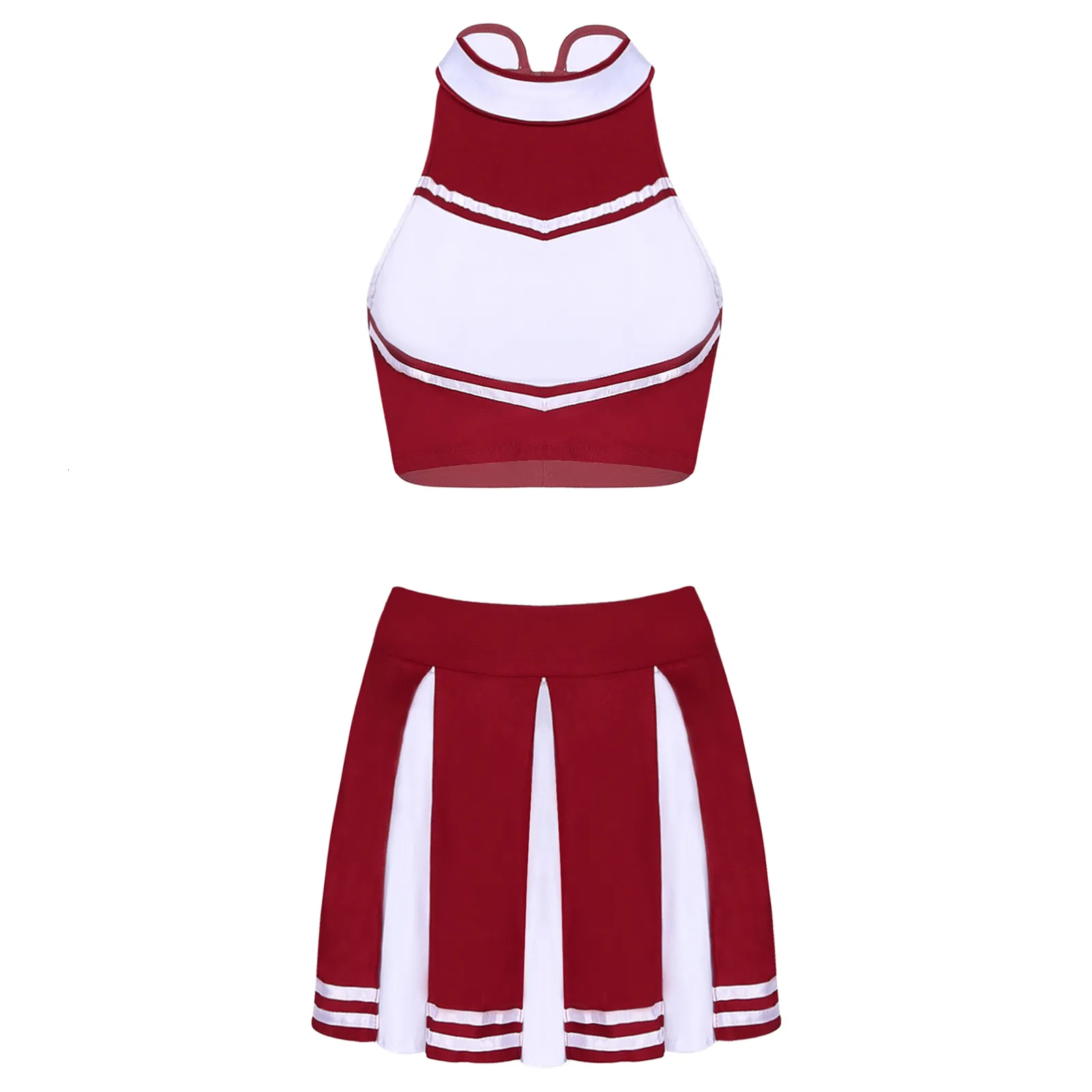Women Cheerleader Uniform Stand Collar Sleeveless Crop Top With Mini Pleated Skirt Dance Outfit
