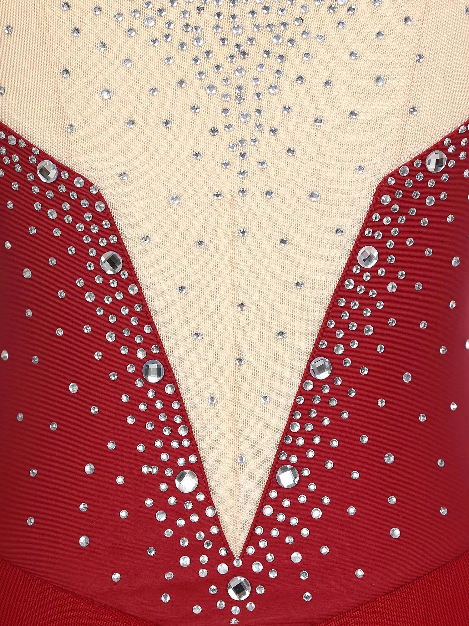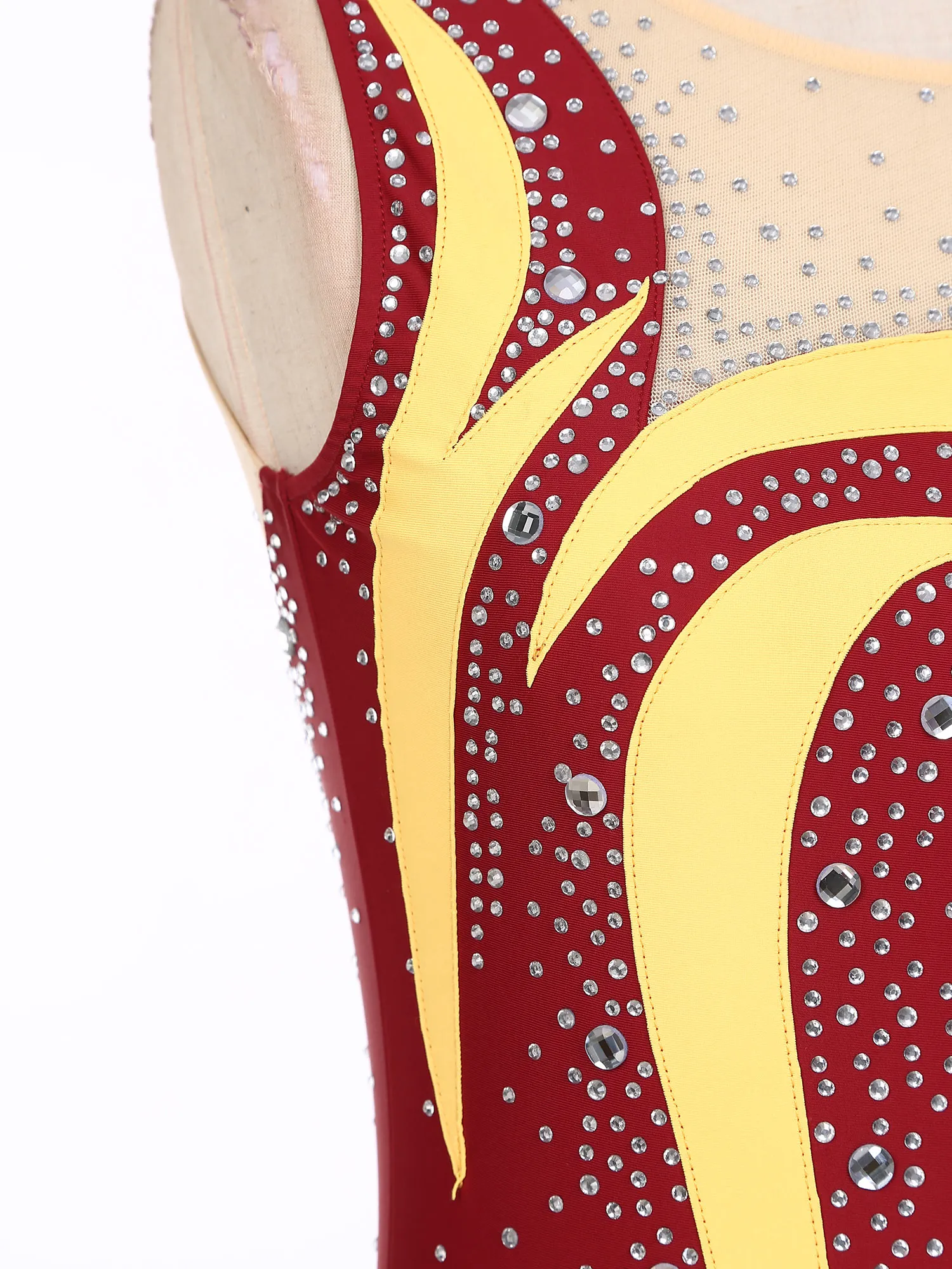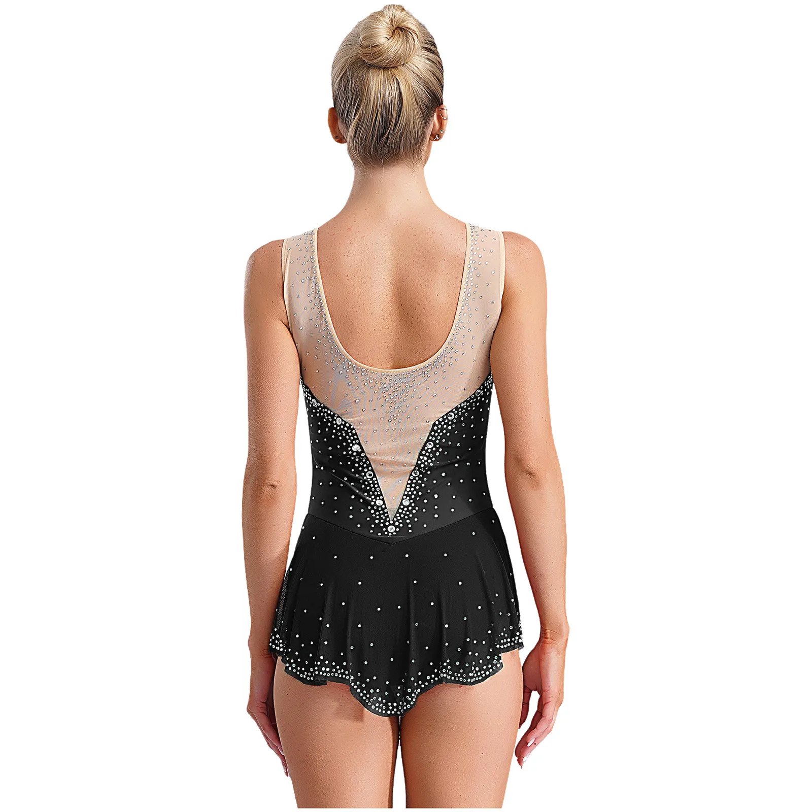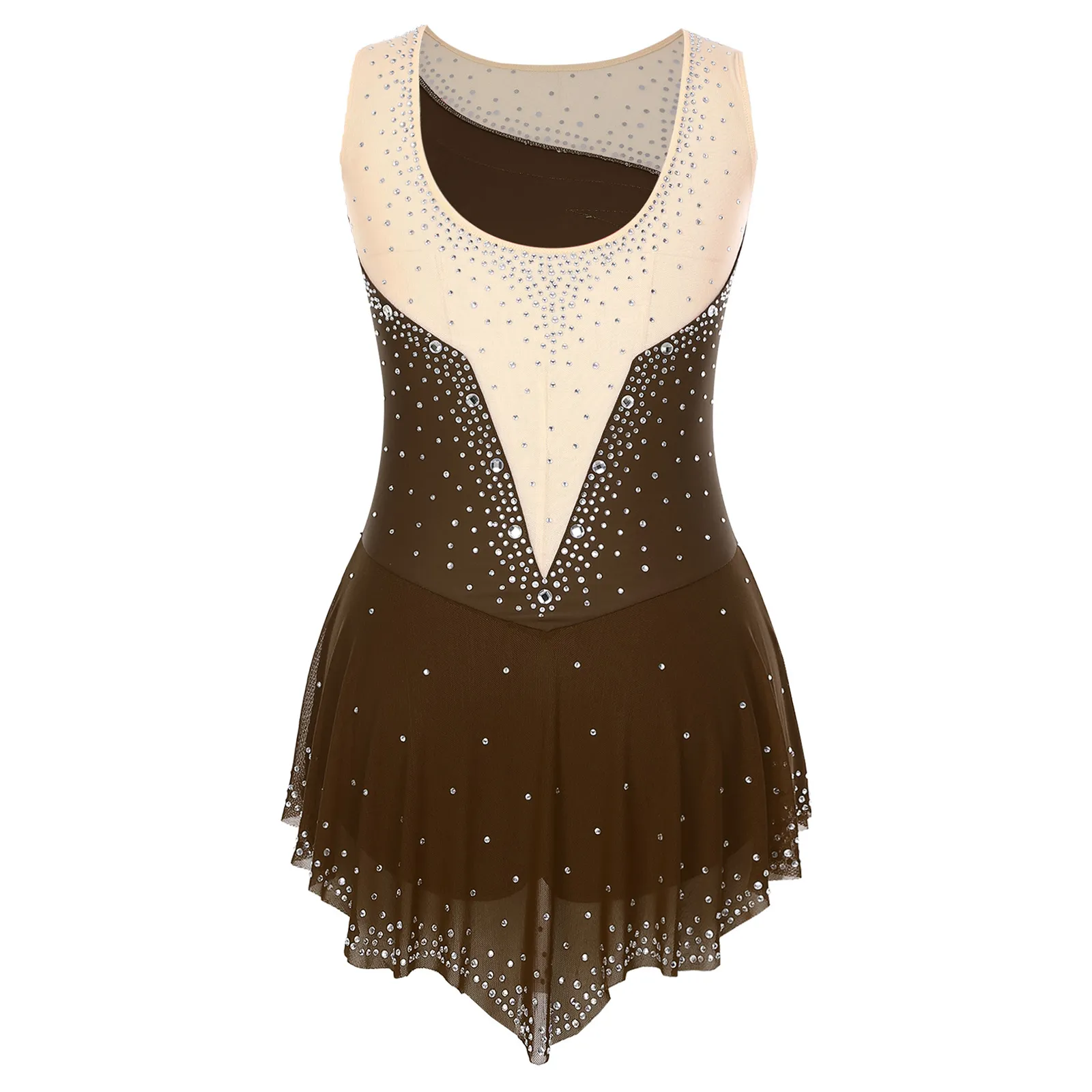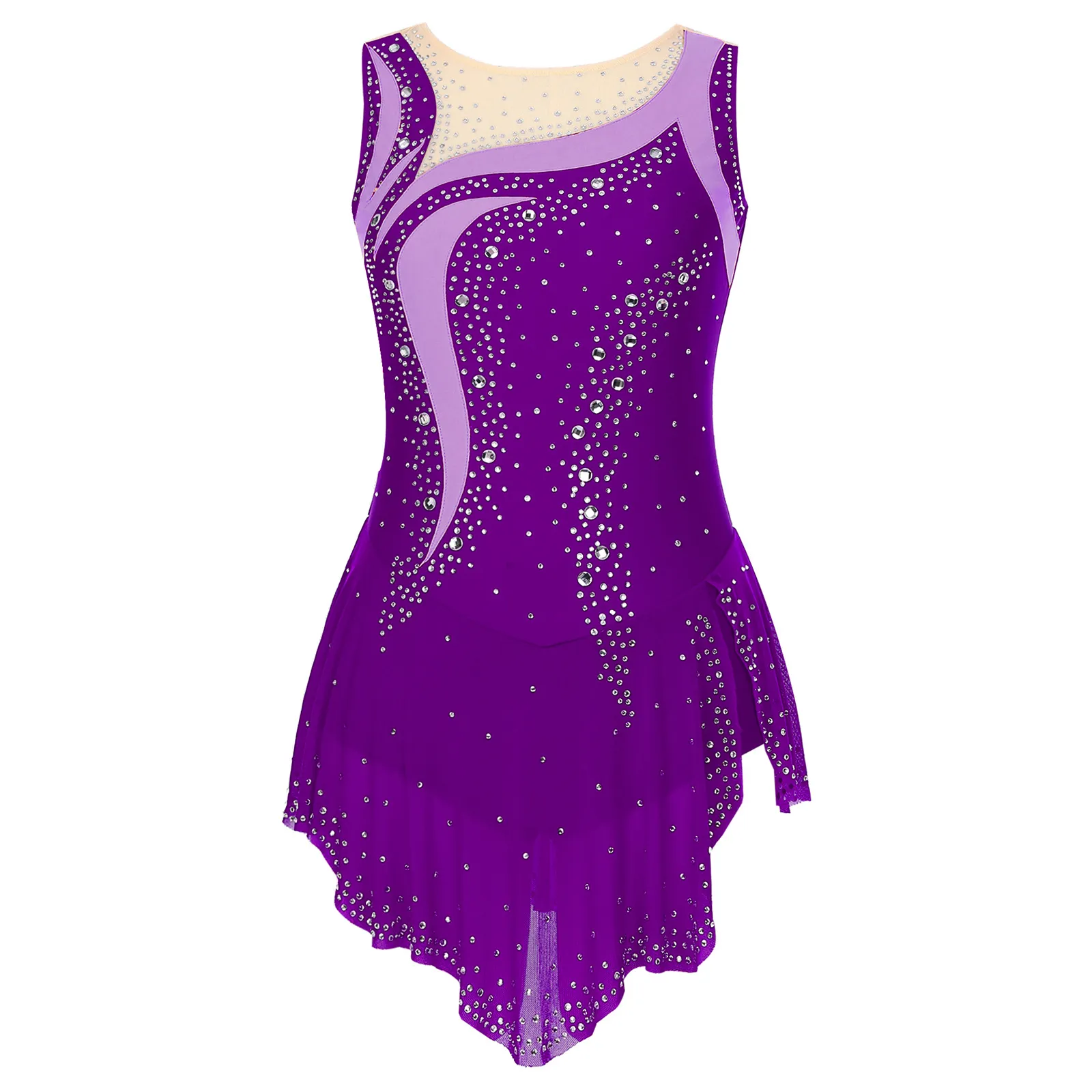 Women Sleeveless Figure Skating Dress Rhinestone Dance Slit Overlay Leotard