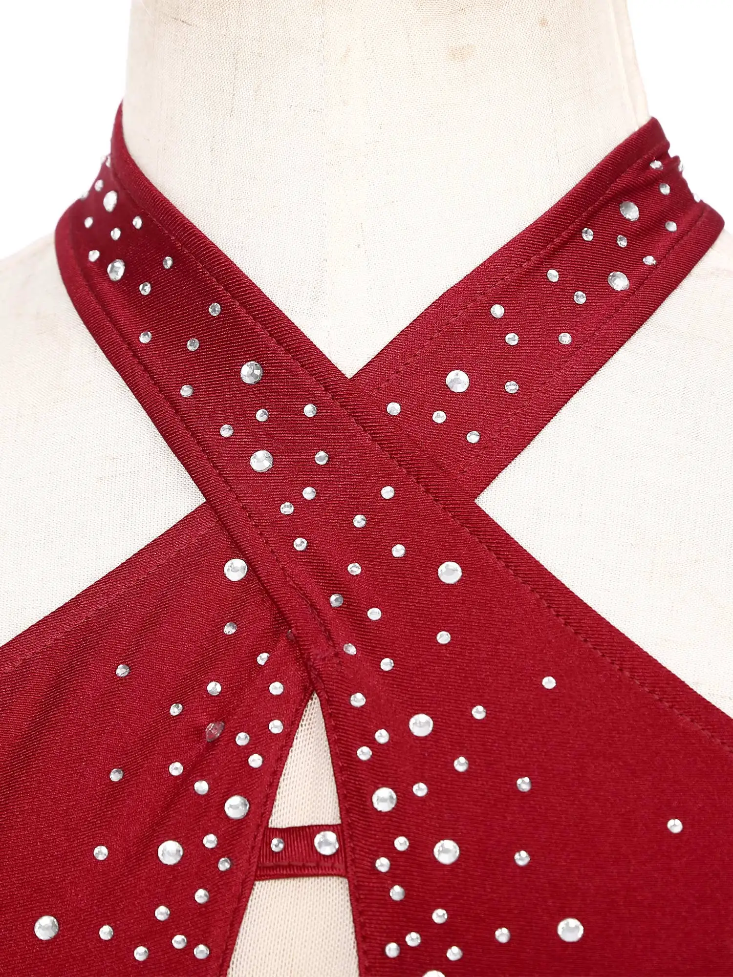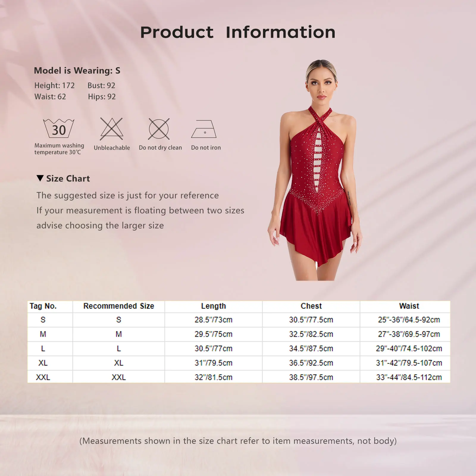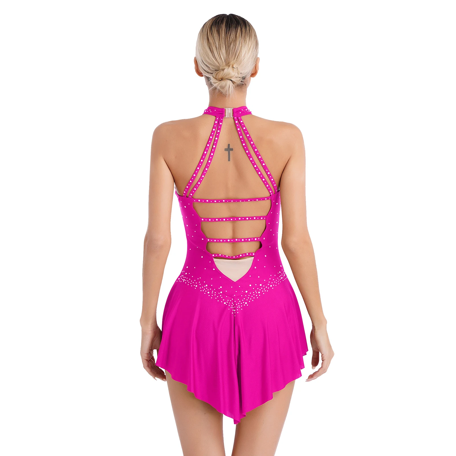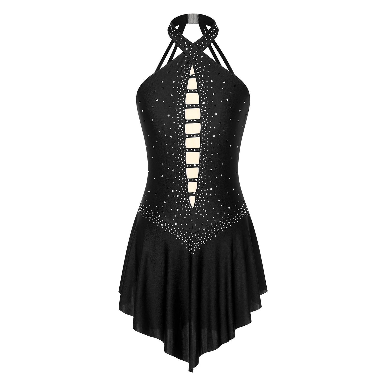 Women's Ballet Lyrical Dance Dress Halter Sleeveless Rhythmic Gymnastics Leotard Figure Skating Costume