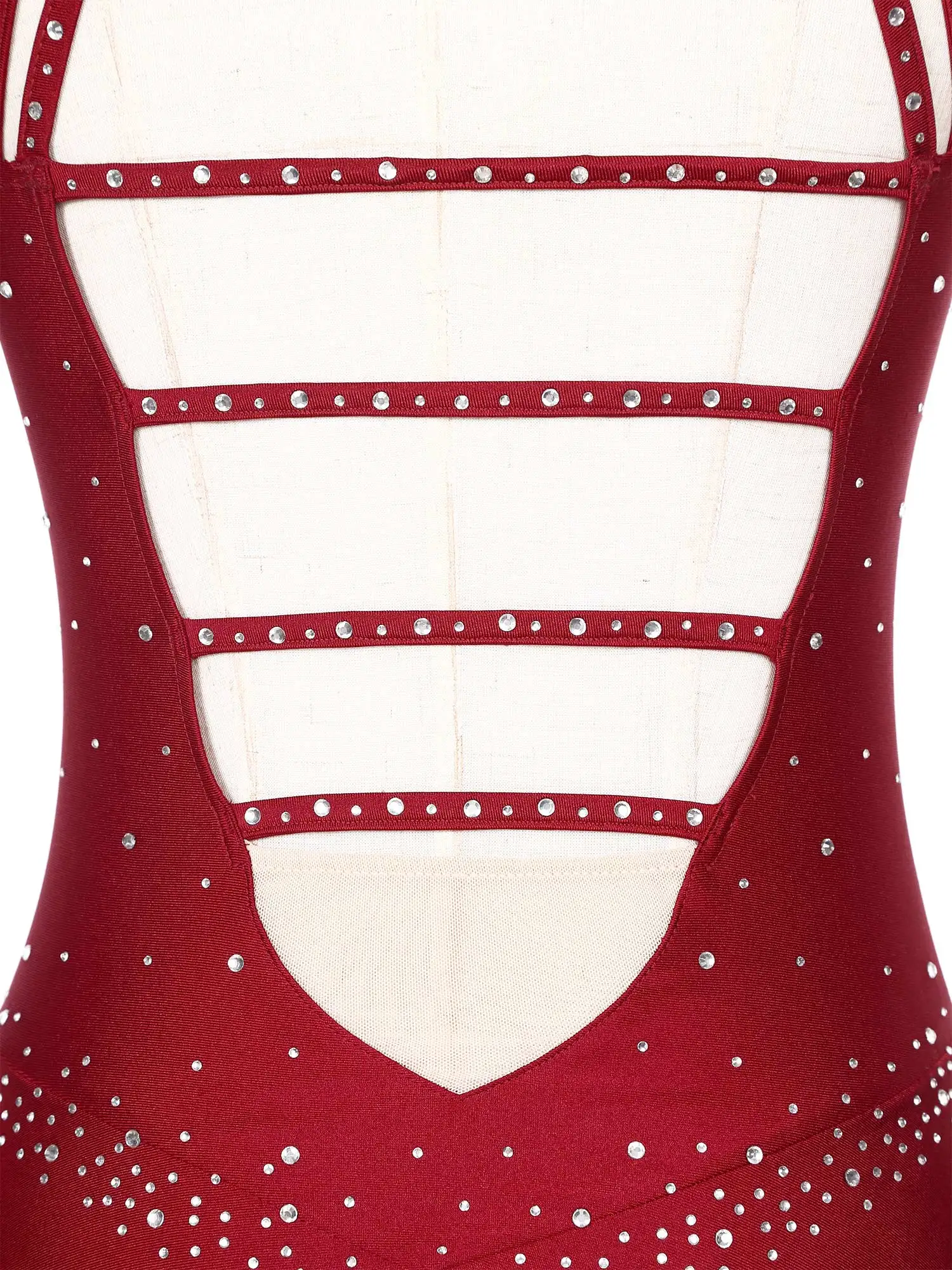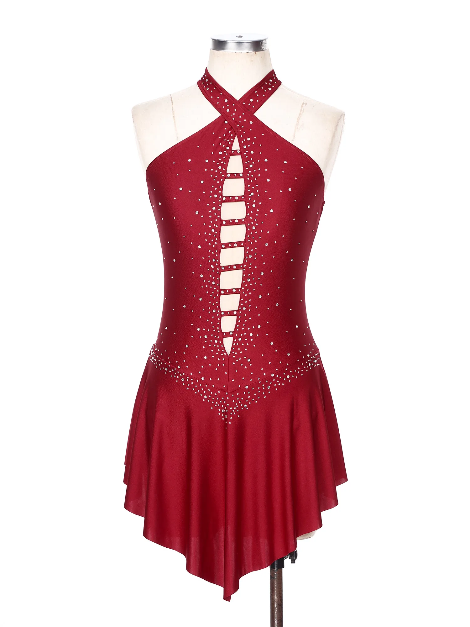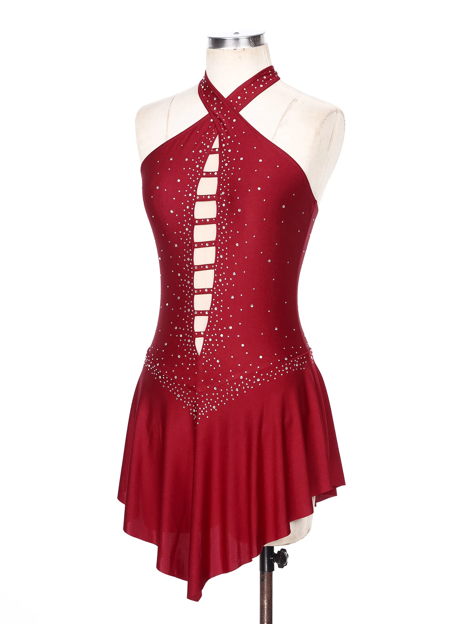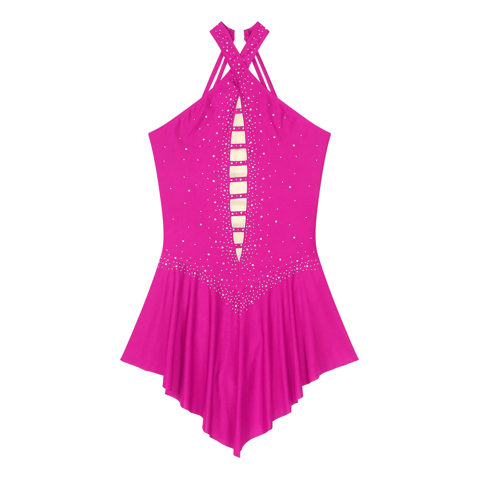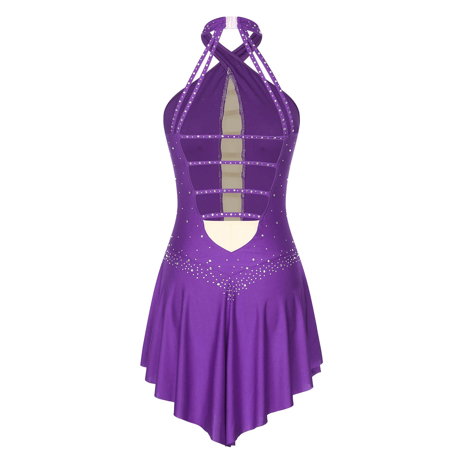 Women's Ballet Lyrical Dance Dress Halter Sleeveless Rhythmic Gymnastics Leotard Figure Skating Costume