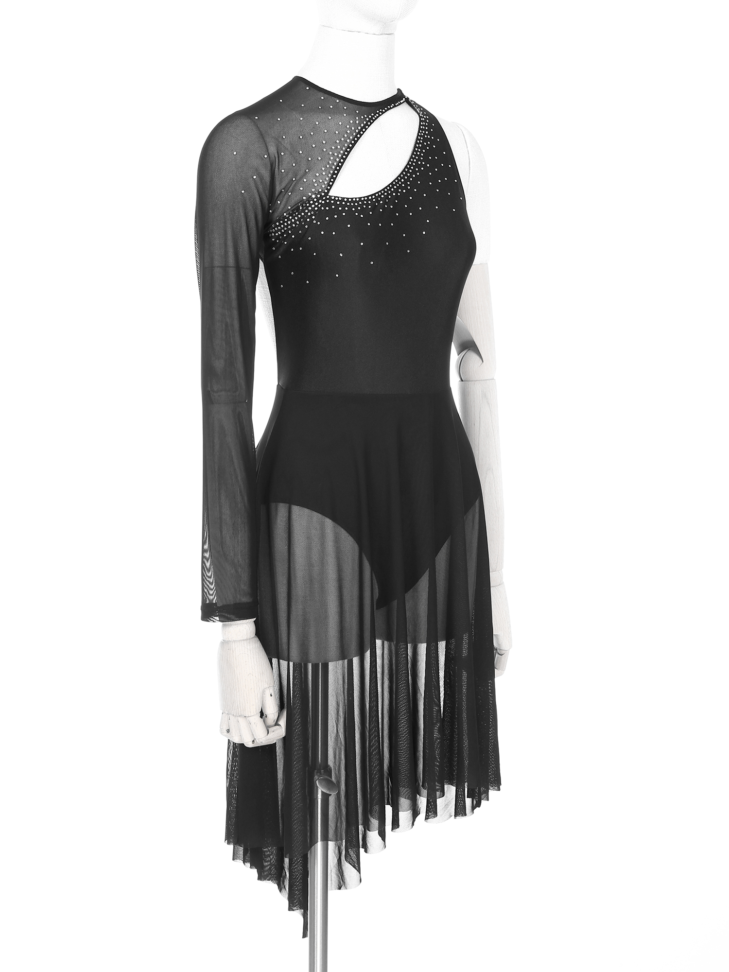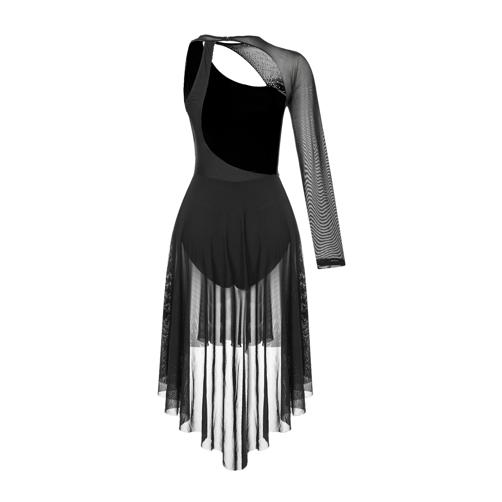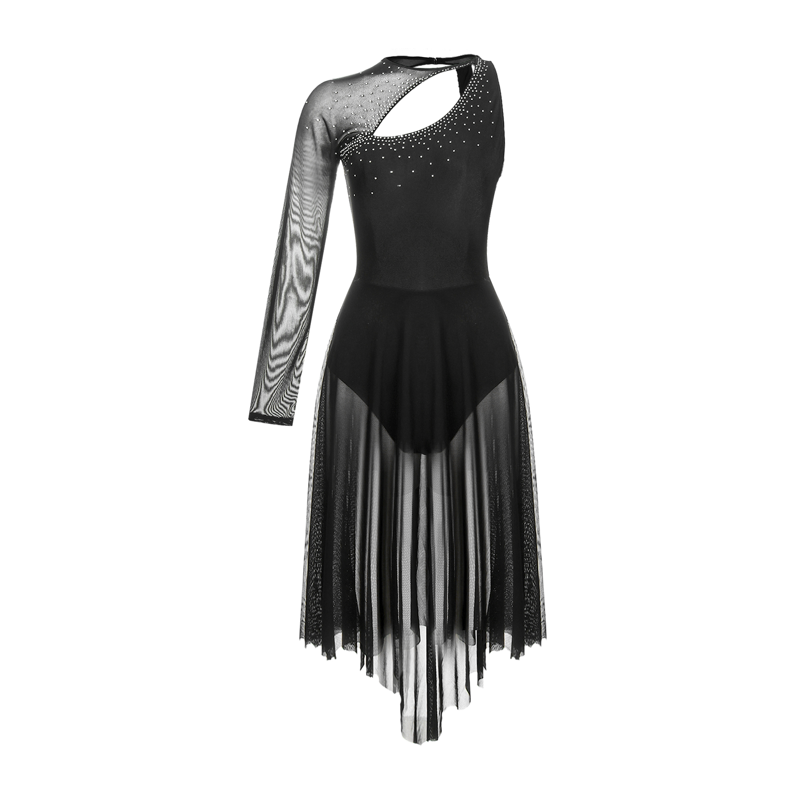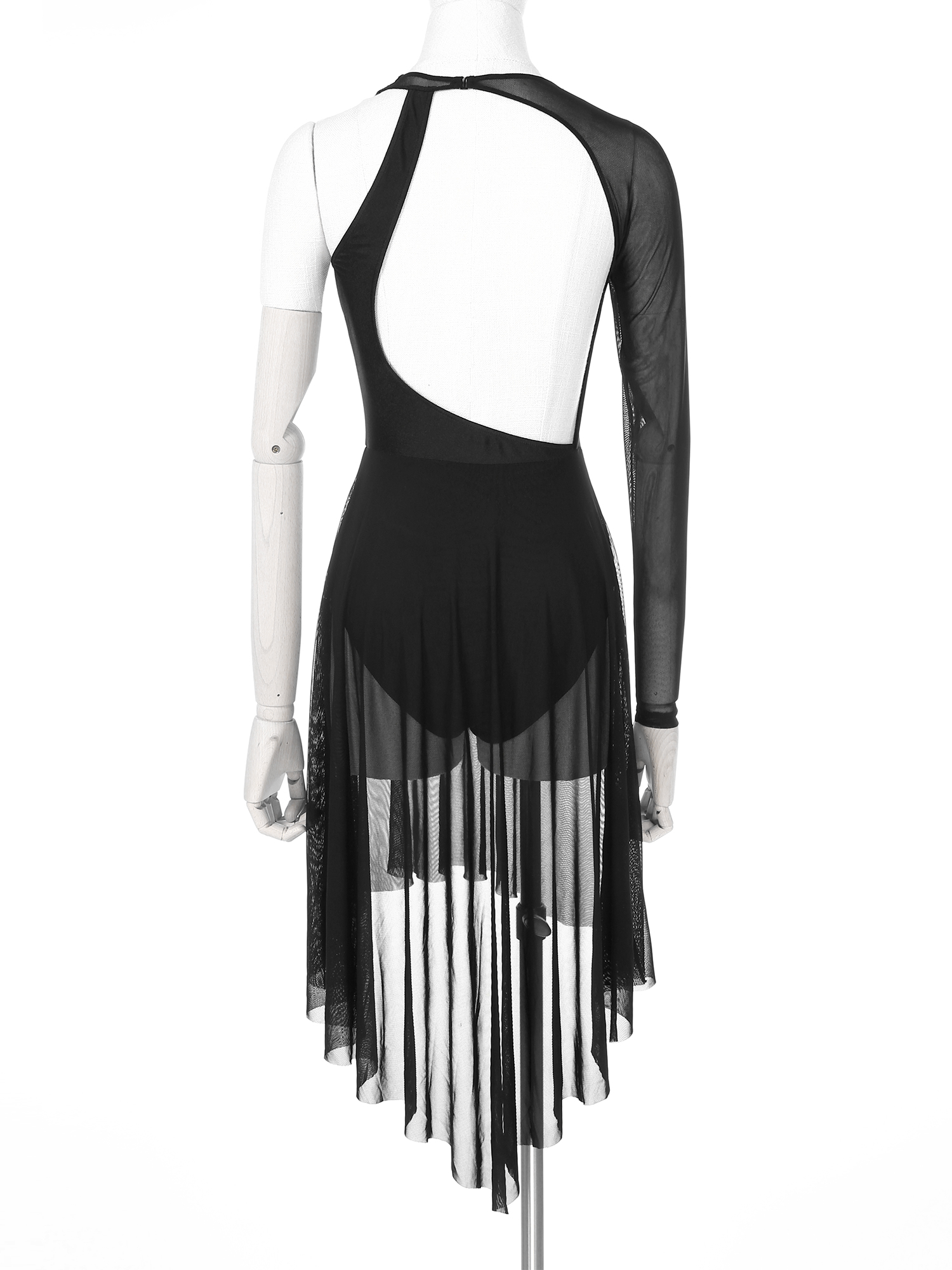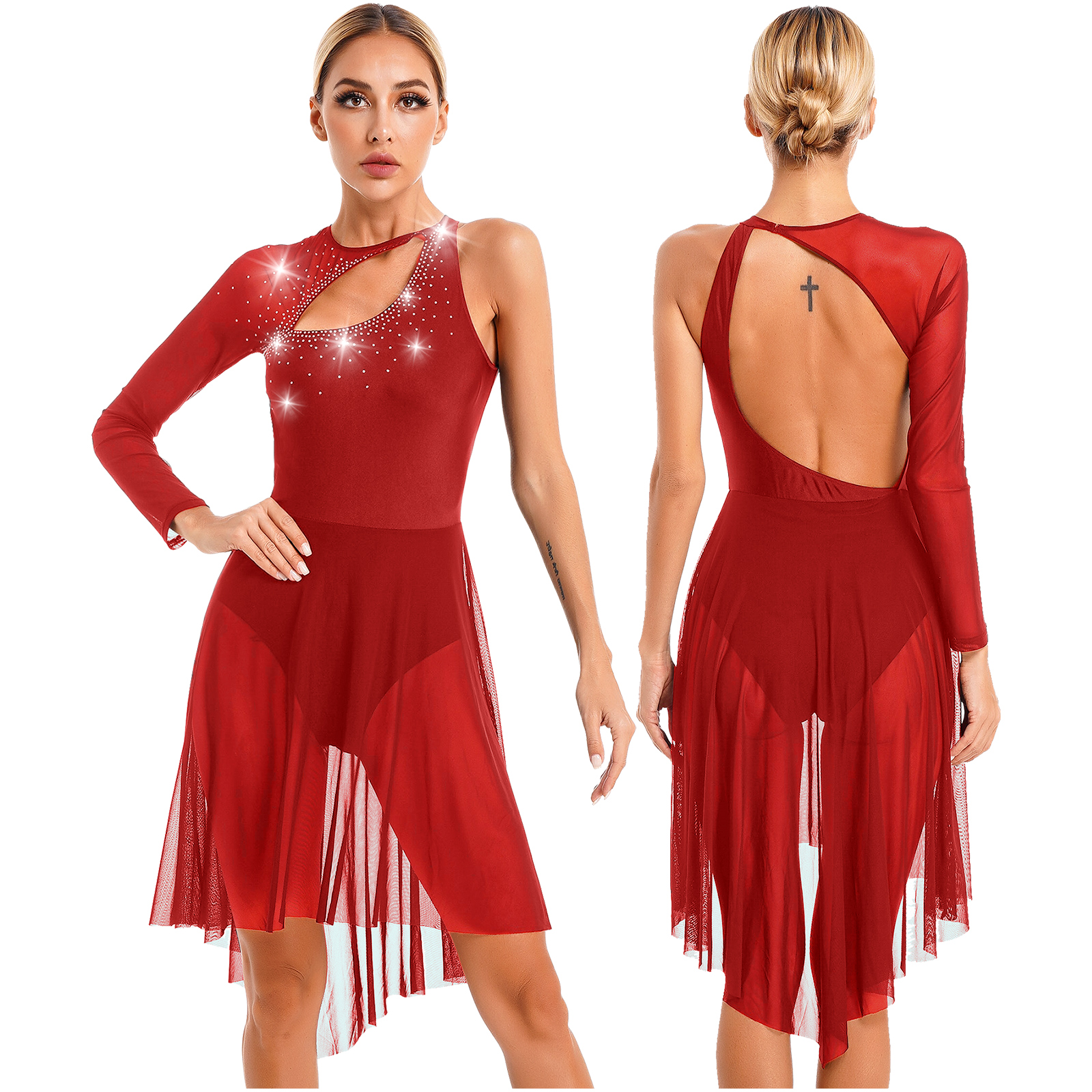 Women's Figure Skating Dress Long Sleeve Lyrical Stage Dance Gymnastics Leotard Ice Skating Sheer Mesh Costume