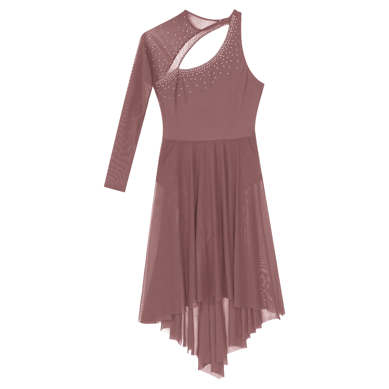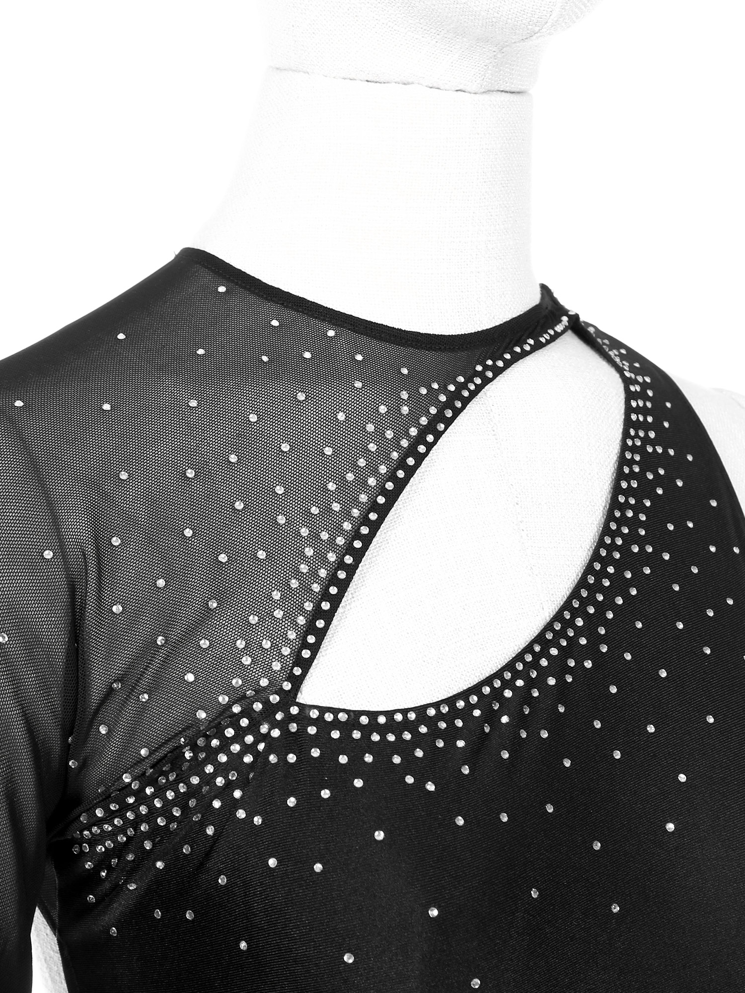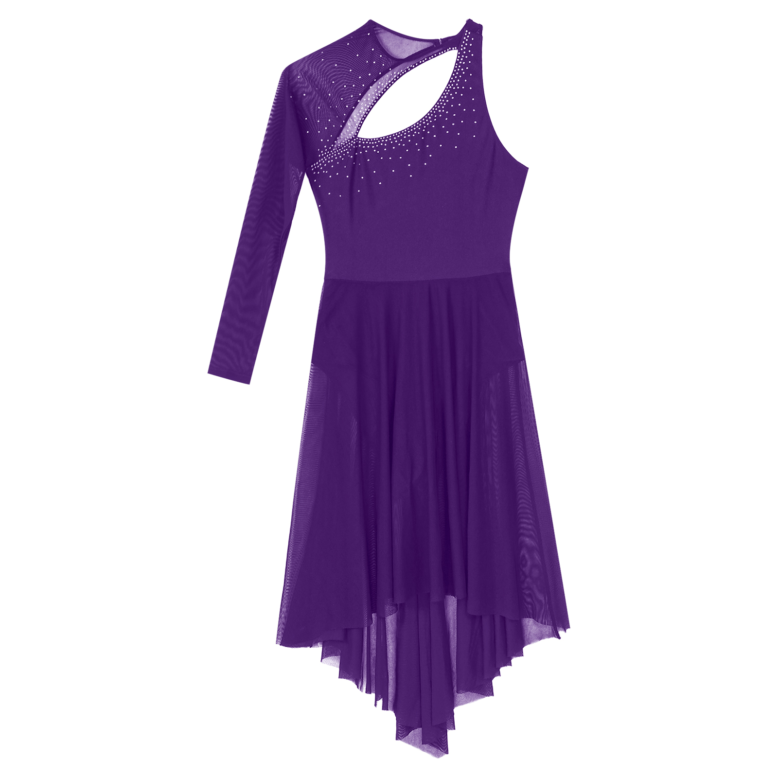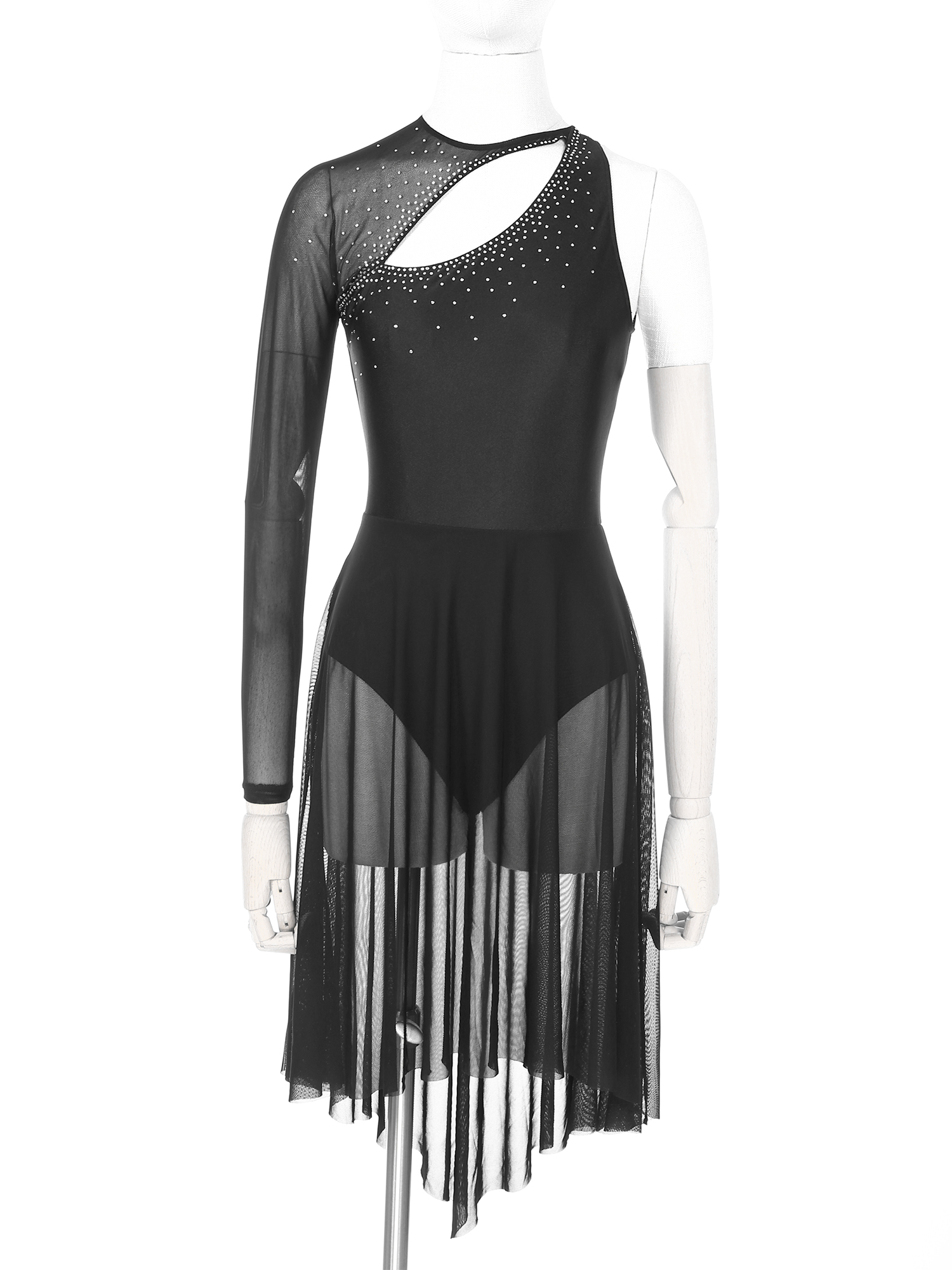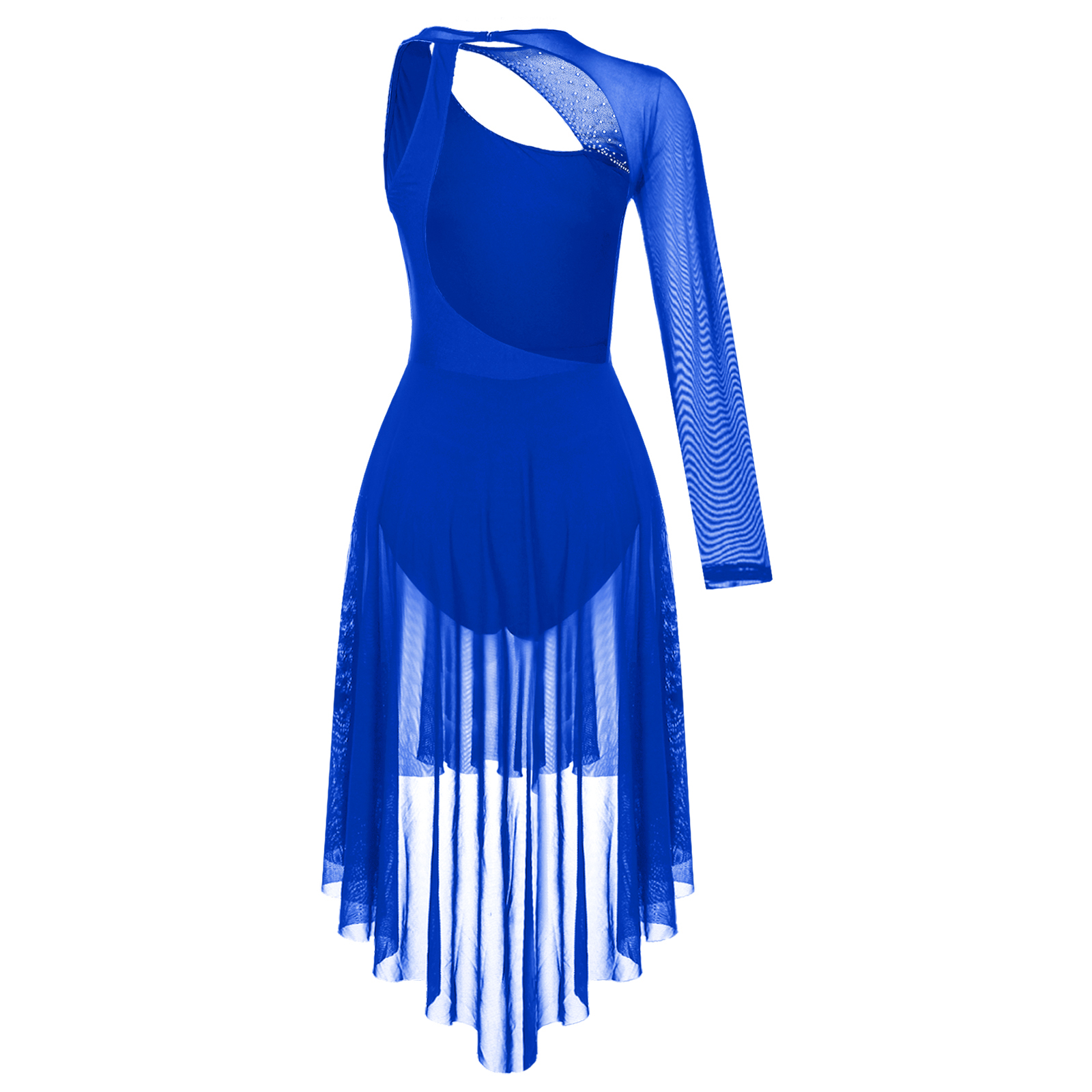 Women's Figure Skating Dress Long Sleeve Lyrical Stage Dance Gymnastics Leotard Ice Skating Sheer Mesh Costume