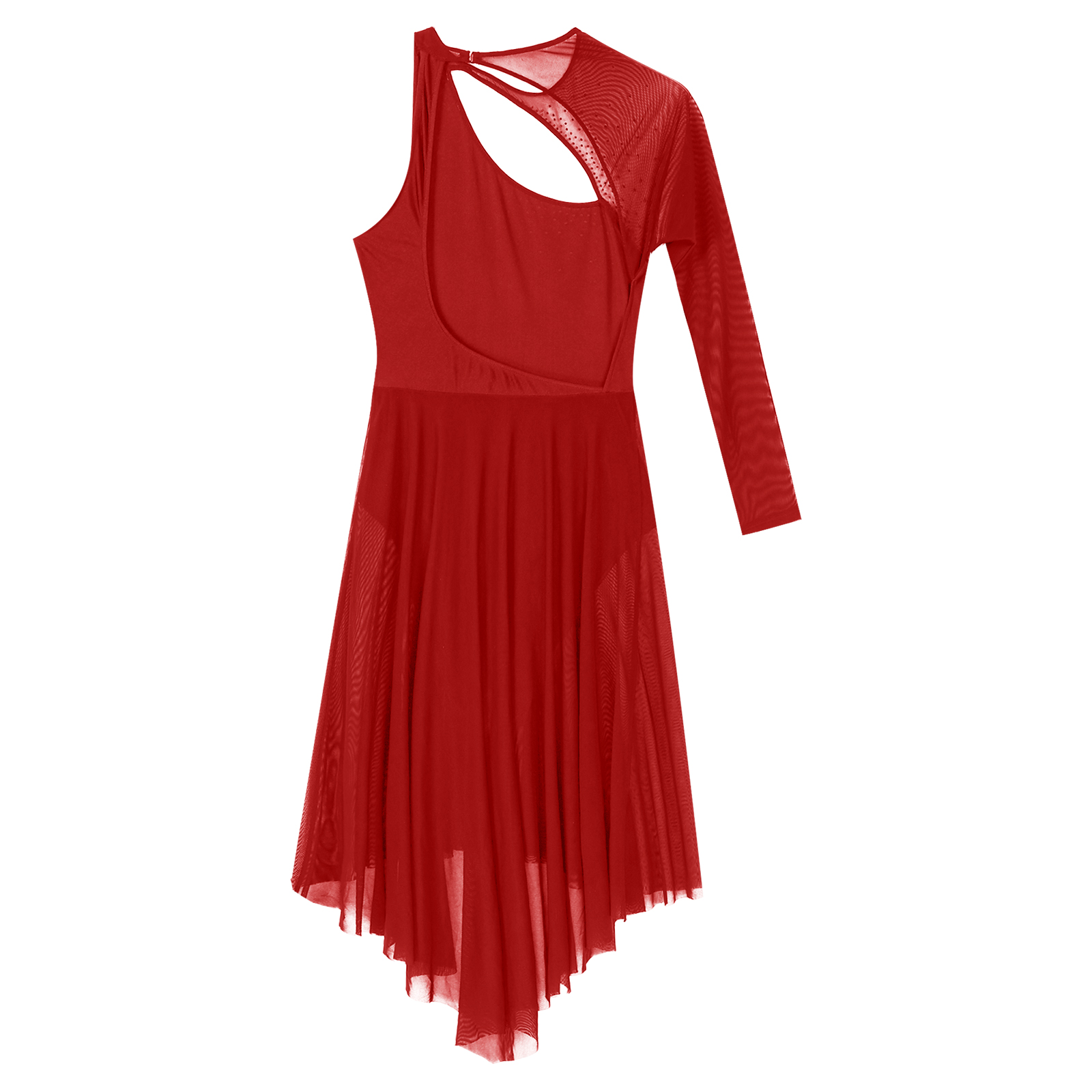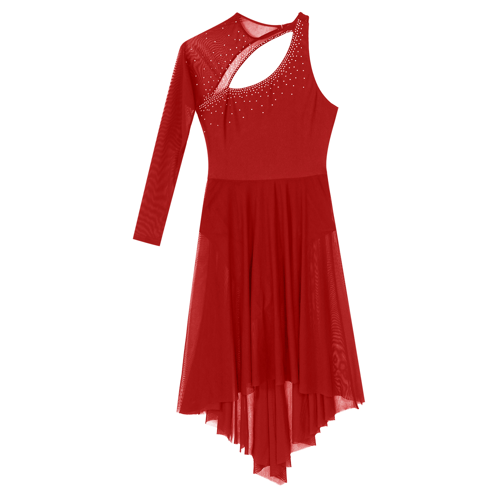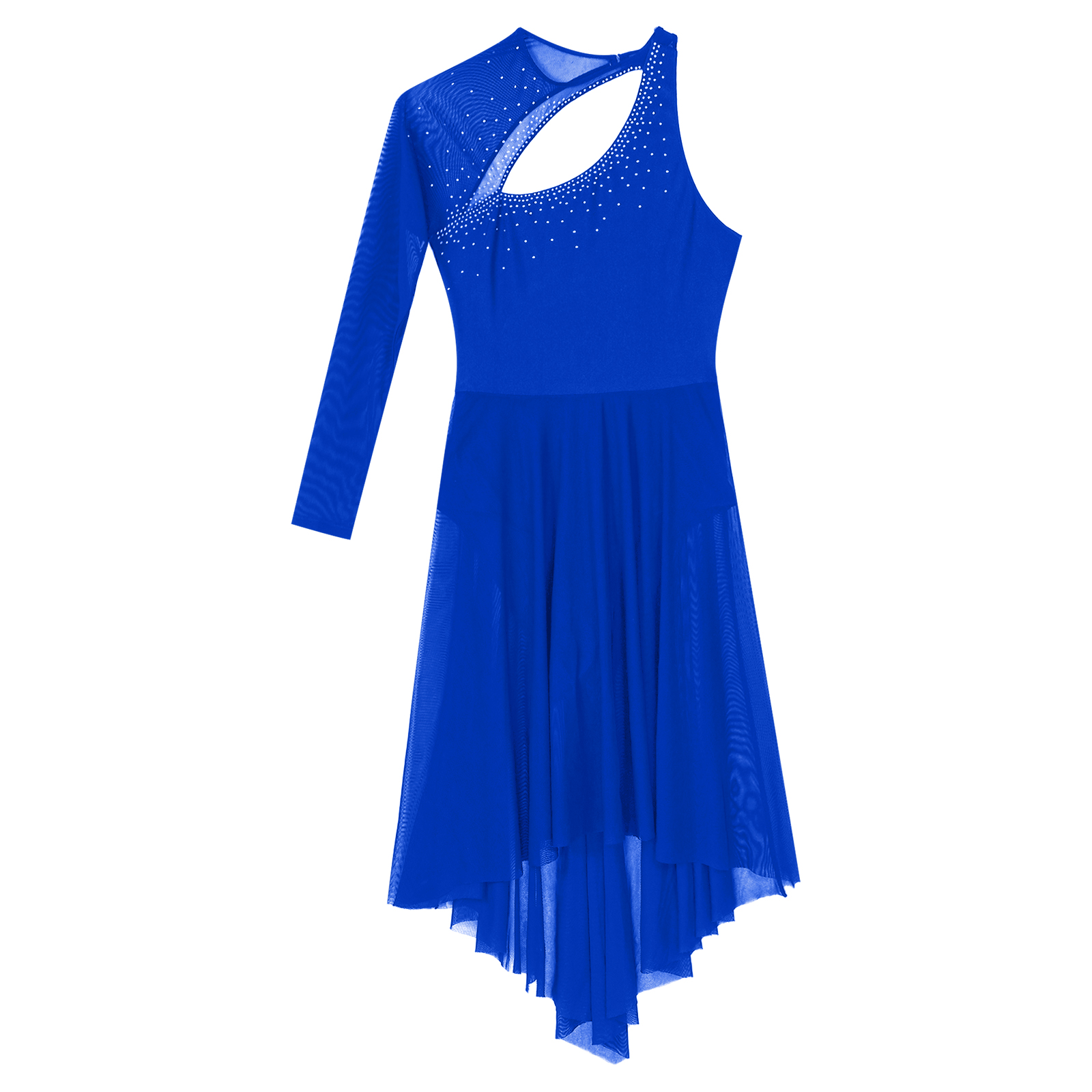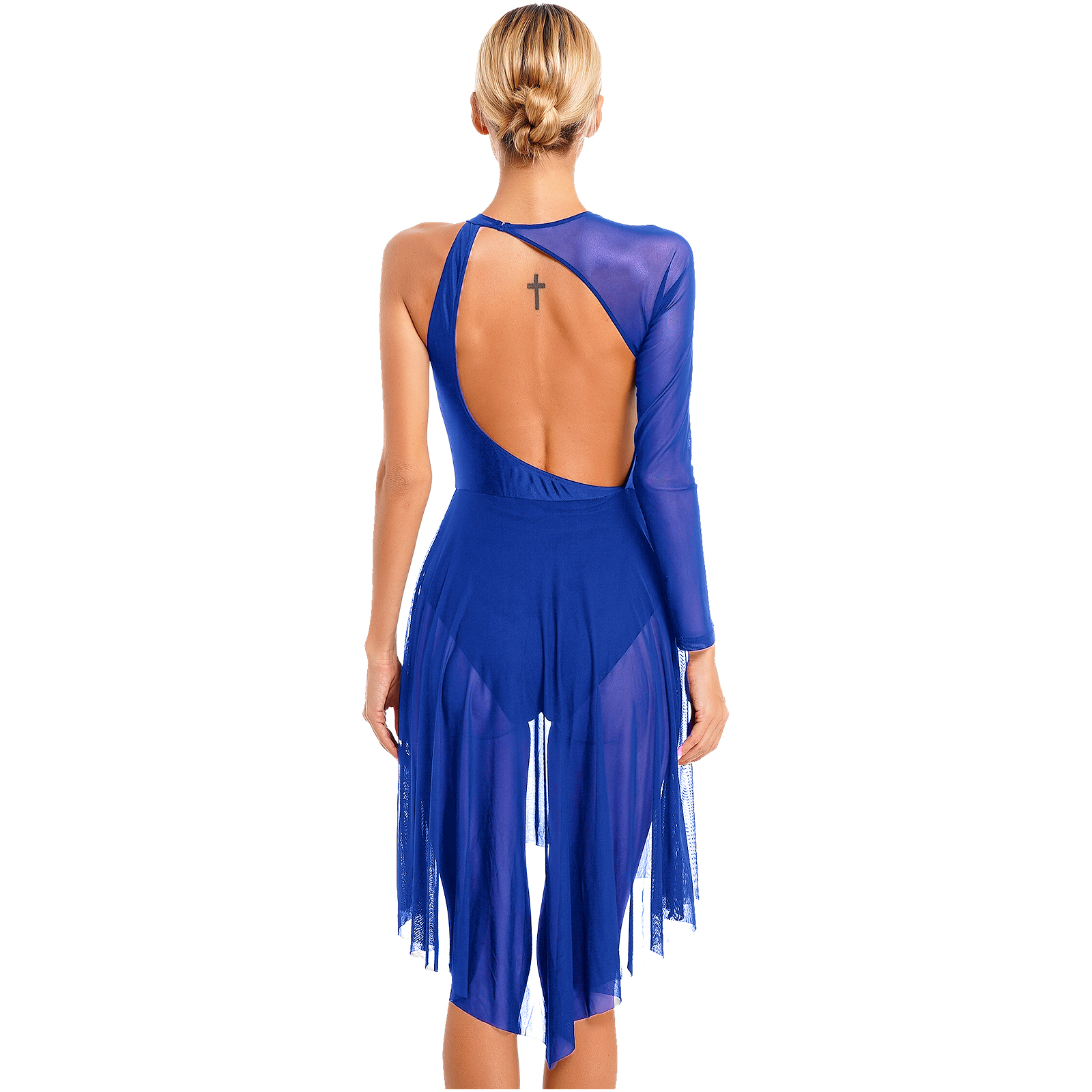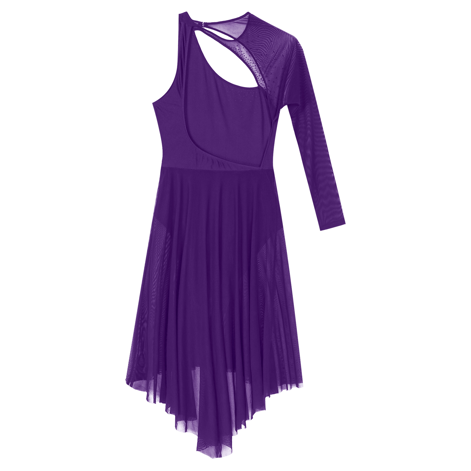 Women's Figure Skating Dress Long Sleeve Lyrical Stage Dance Gymnastics Leotard Ice Skating Sheer Mesh Costume