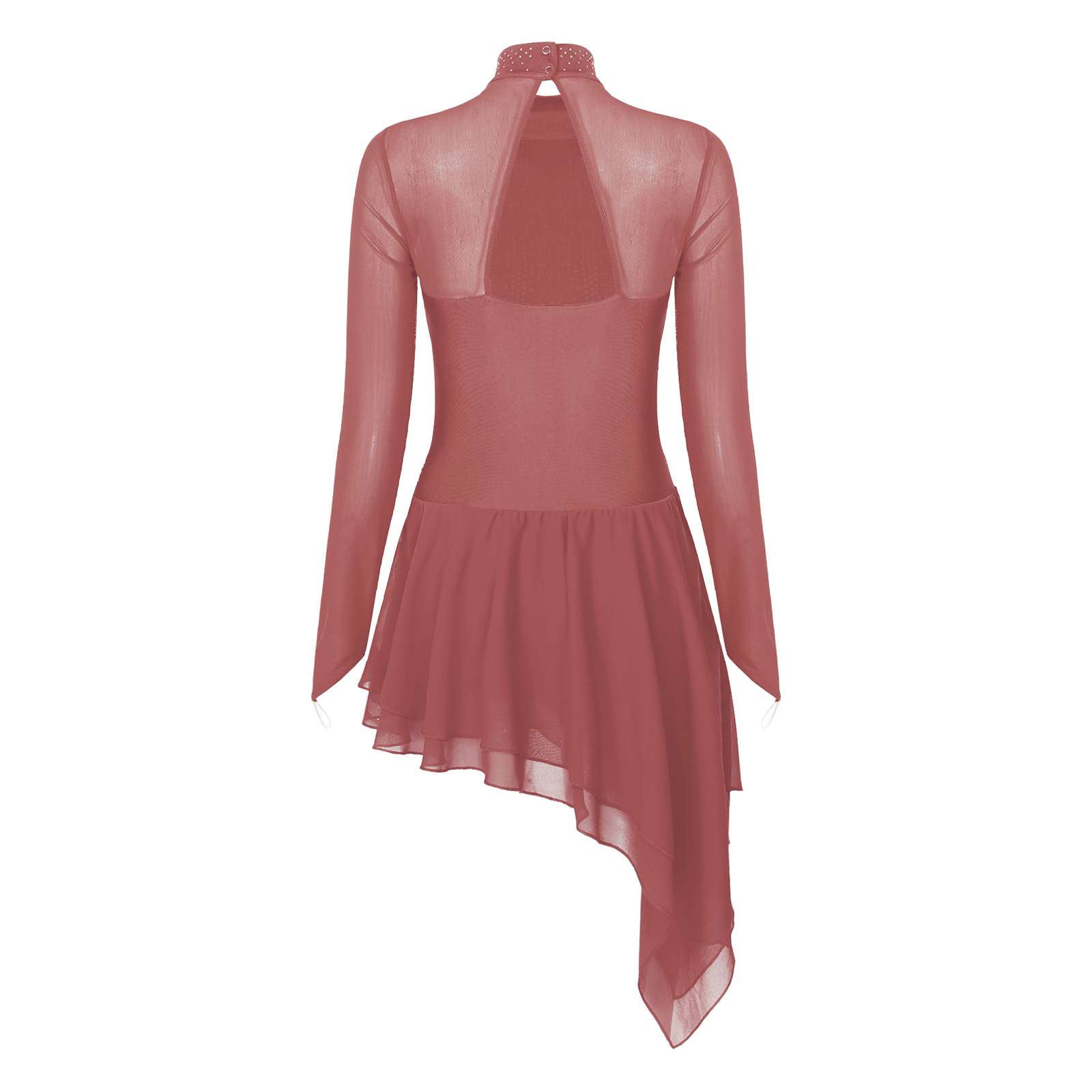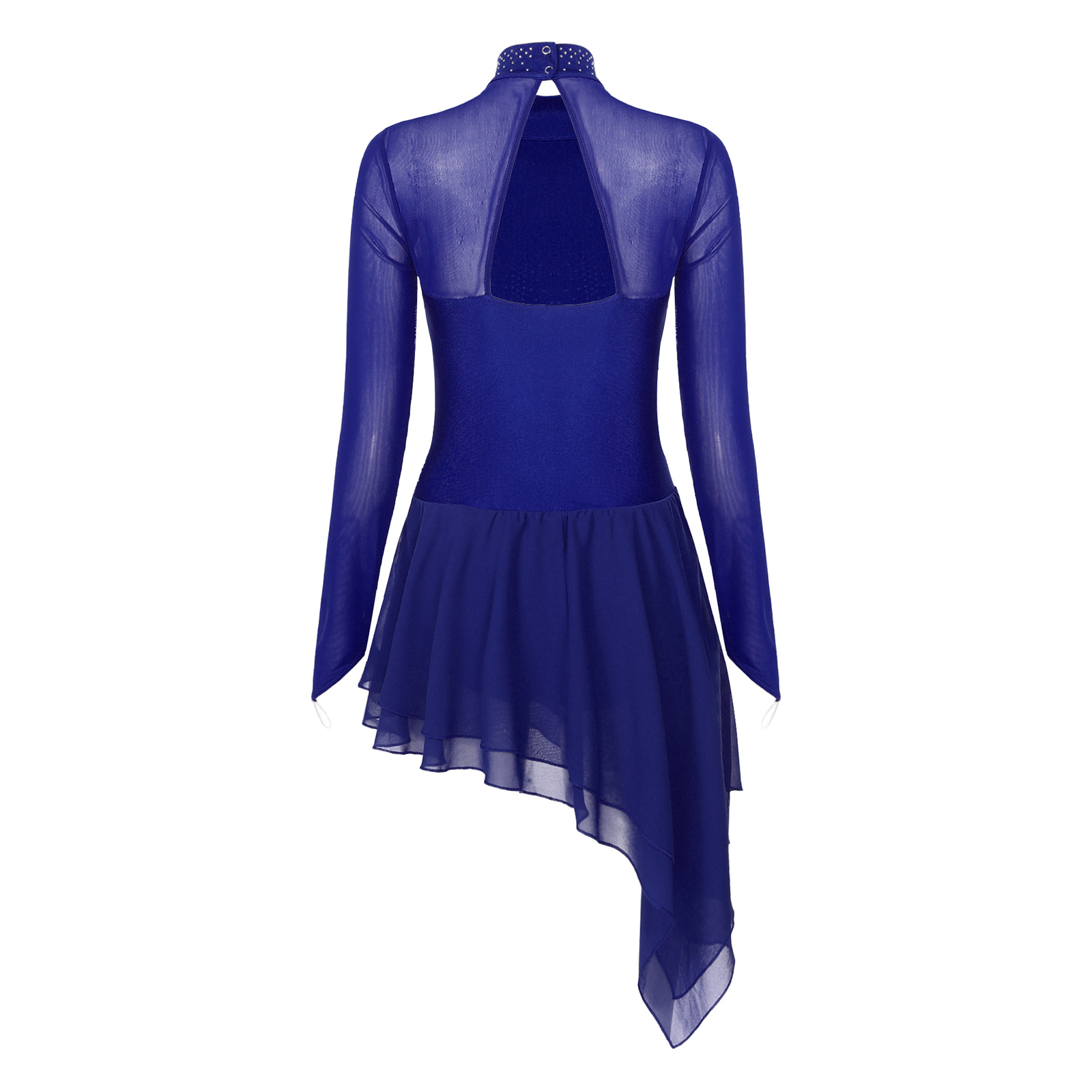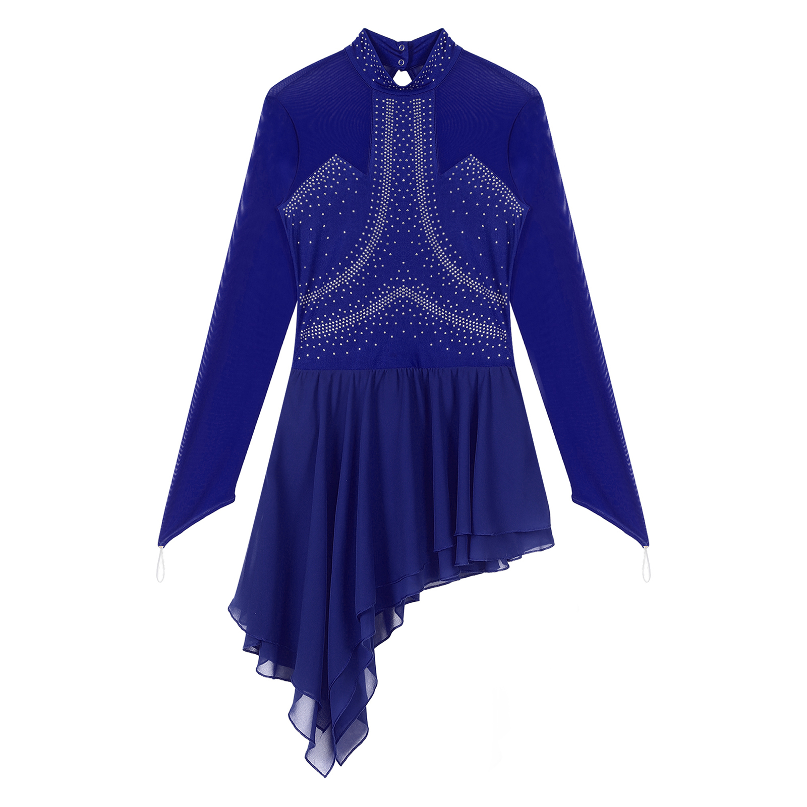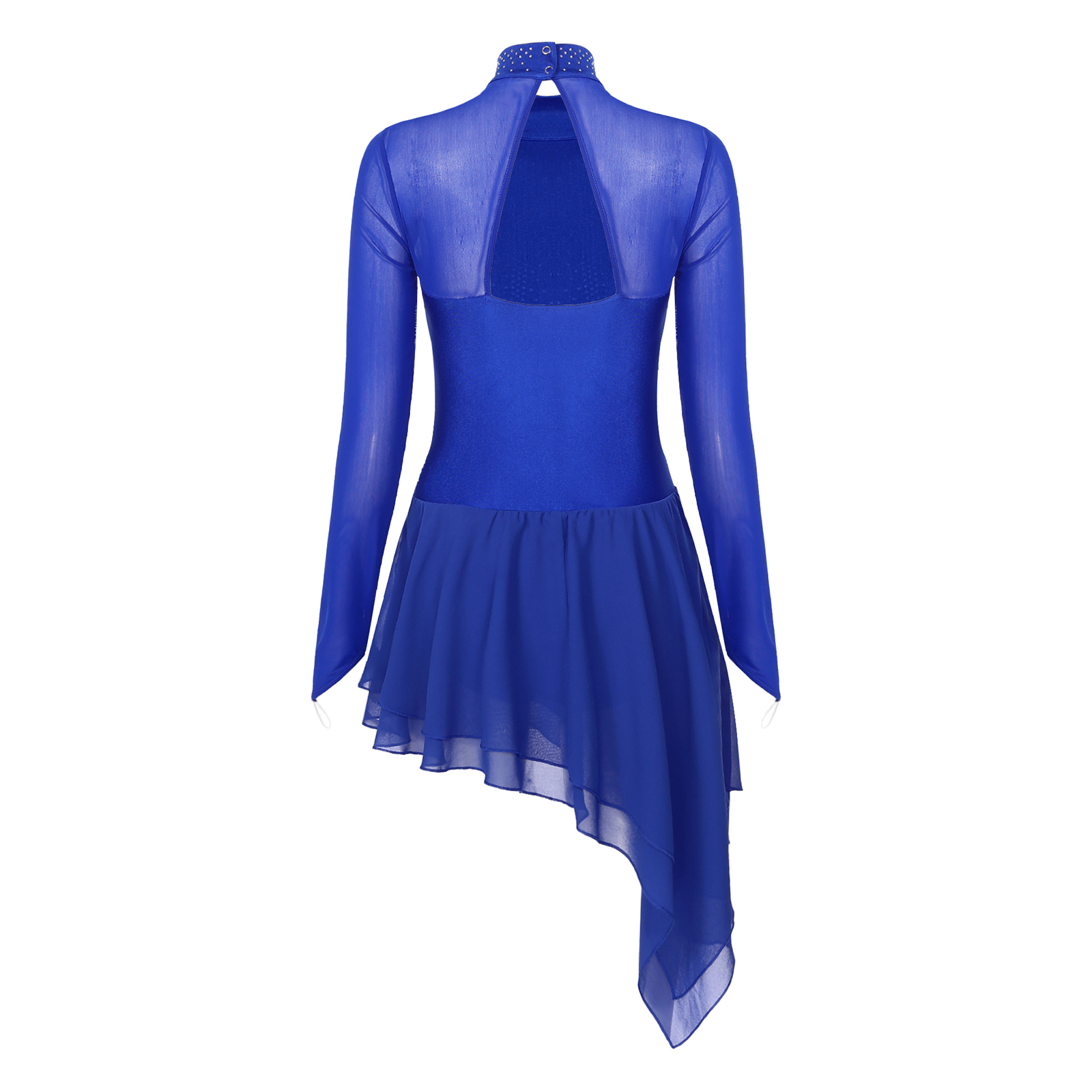 Women's Figure Skating Dress Sparkling Rhinestone Sheer Mesh Long Sleeve Ballet Gymnastics Leotard Stage Dancewear