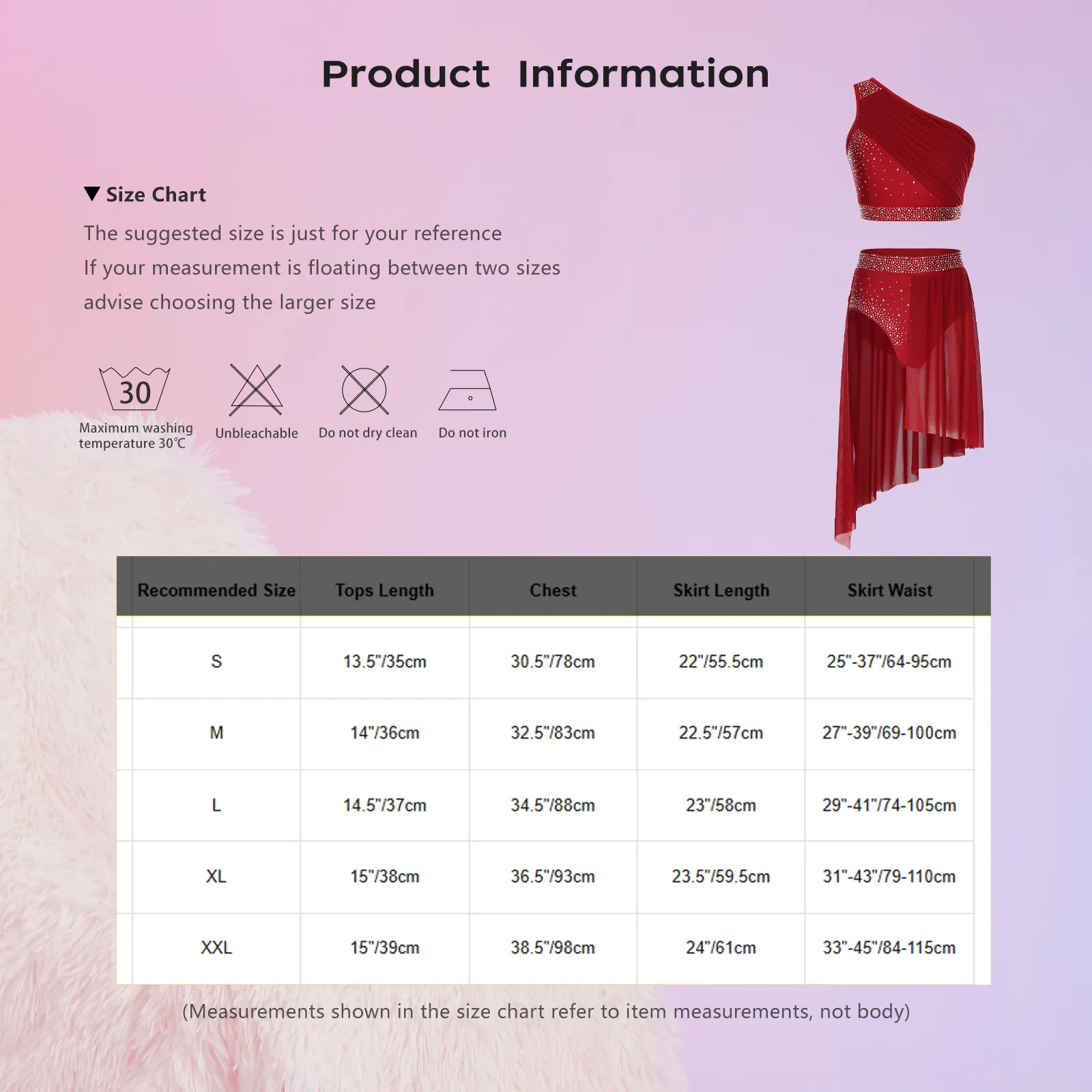 Women's One Shoulder Crop Top With Leotard Skirt Figure Skating Gymnastics Dress