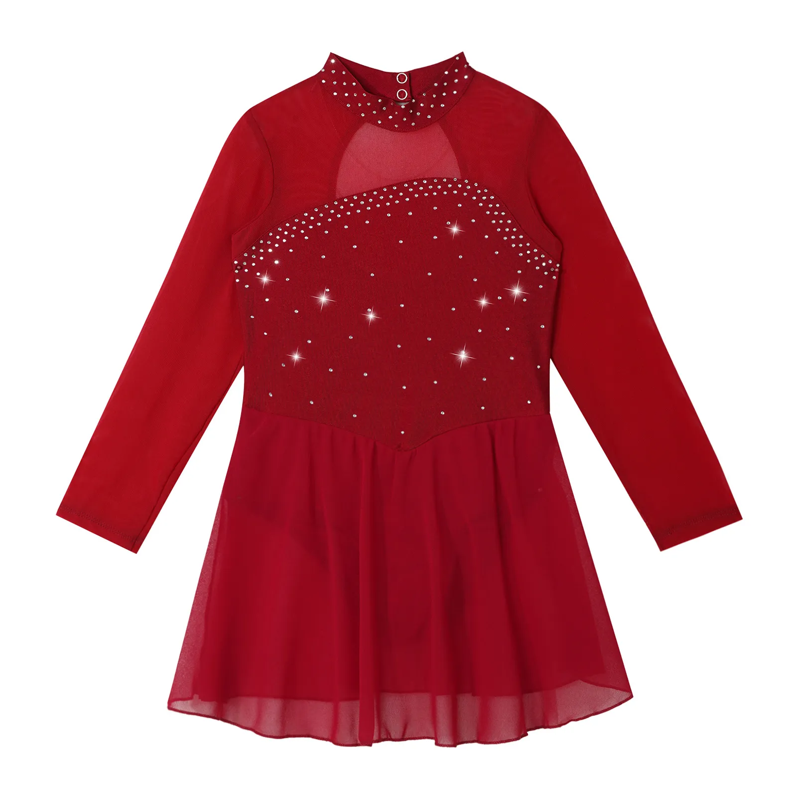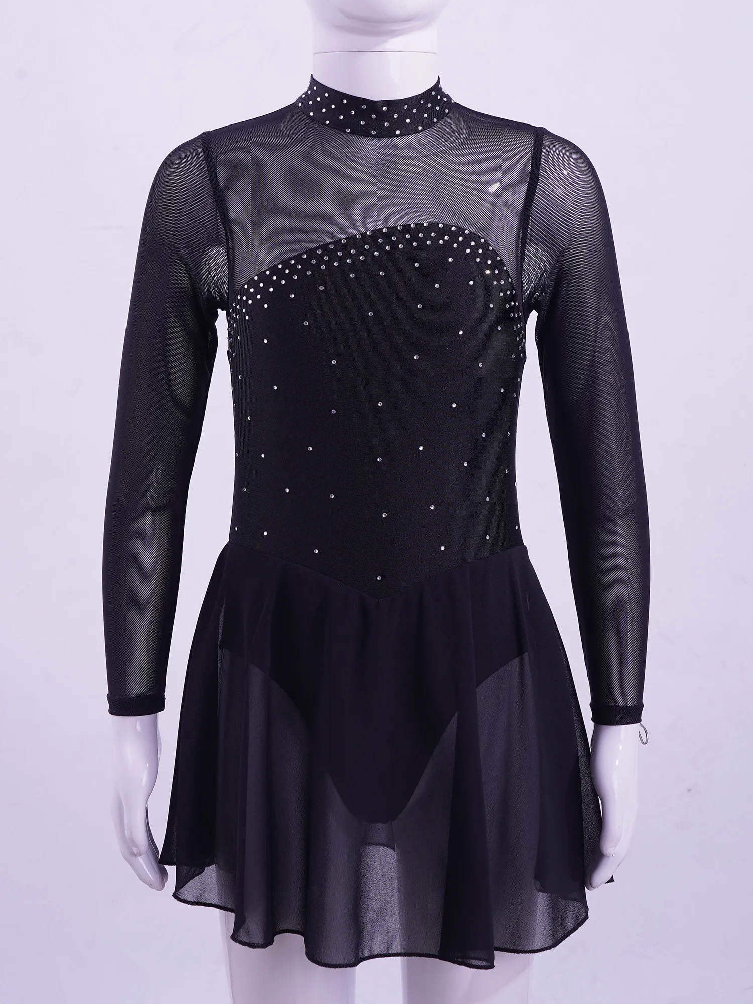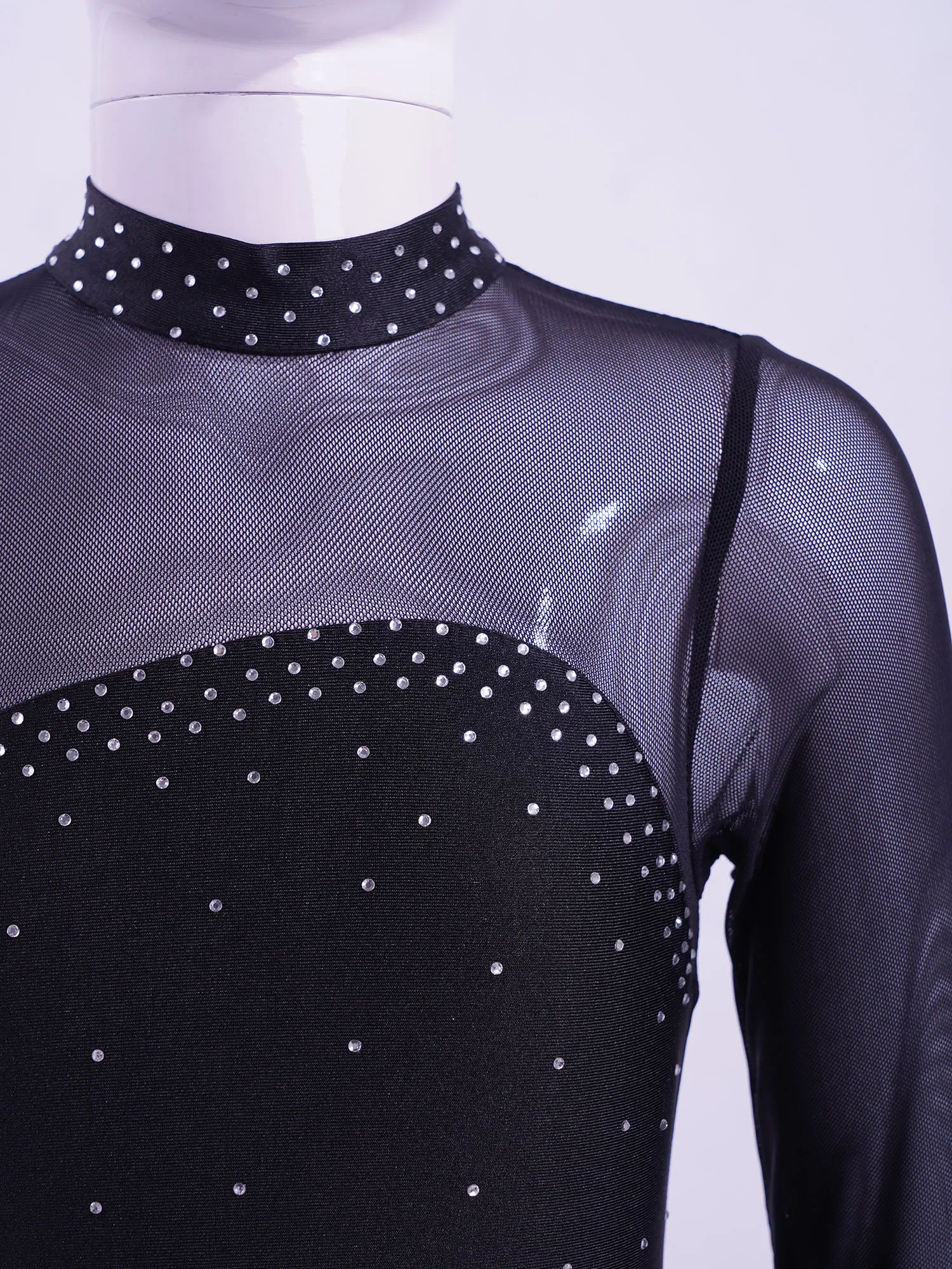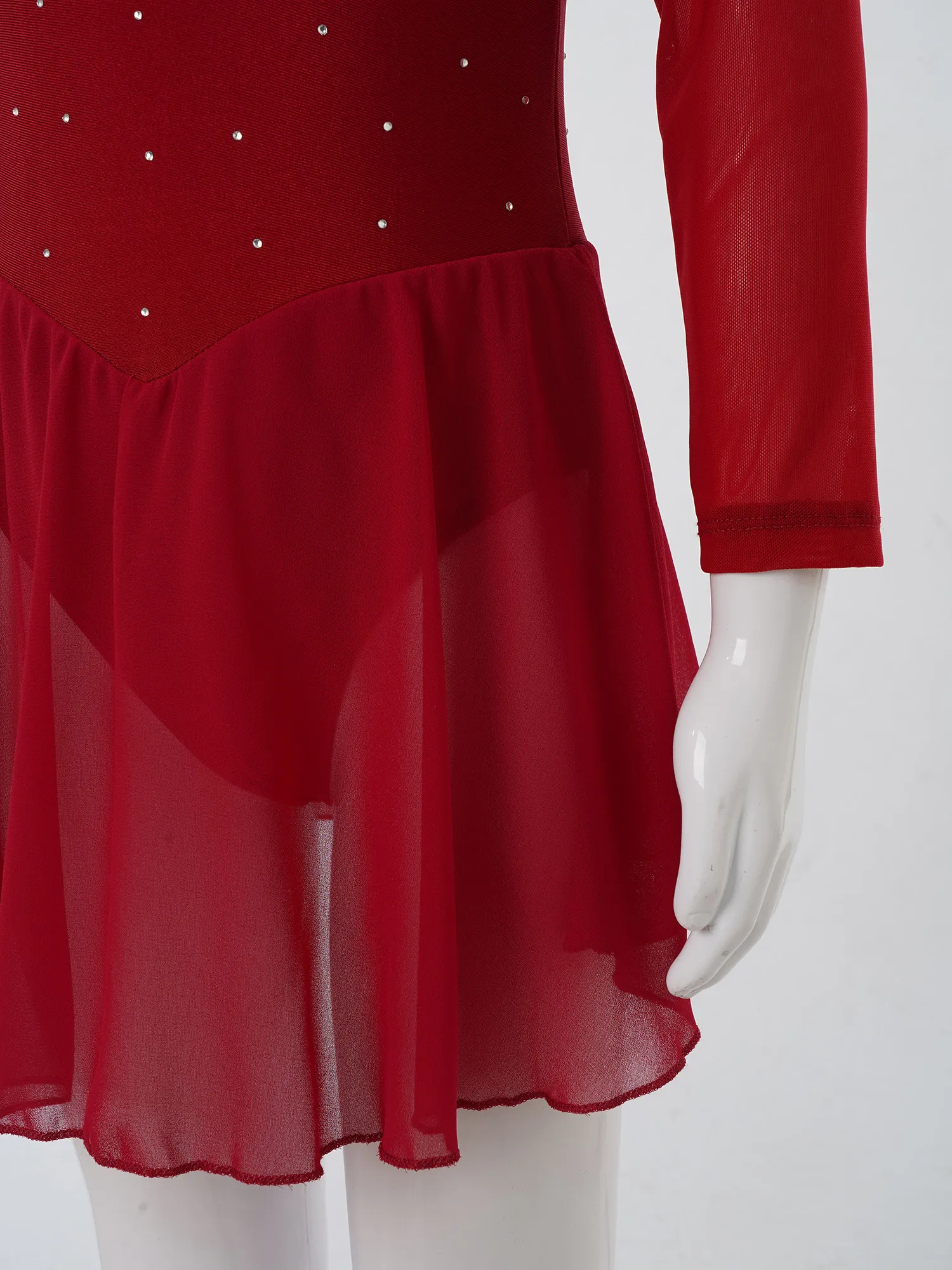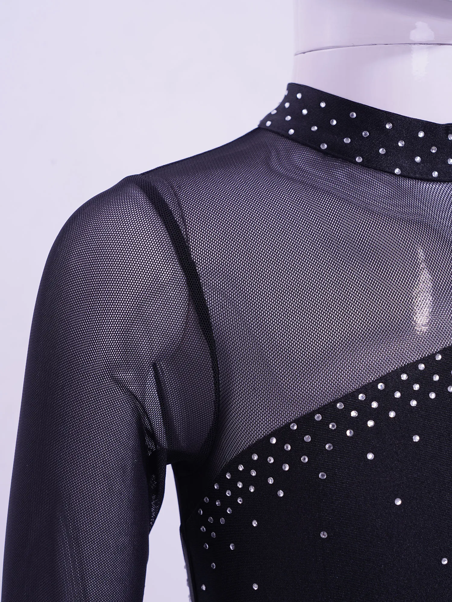 Gymnastics Leotard Ballet Tights Latin Dance Performance Costume Long Sleeve Rhinestone Figure Skating Dress