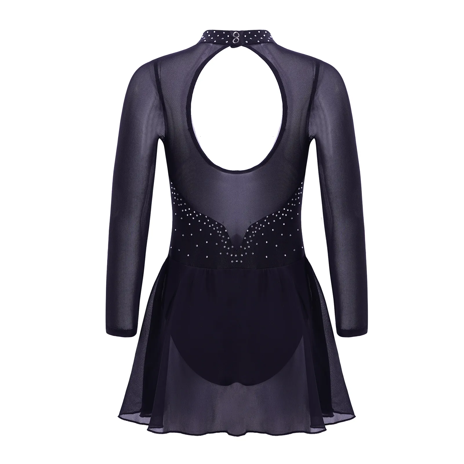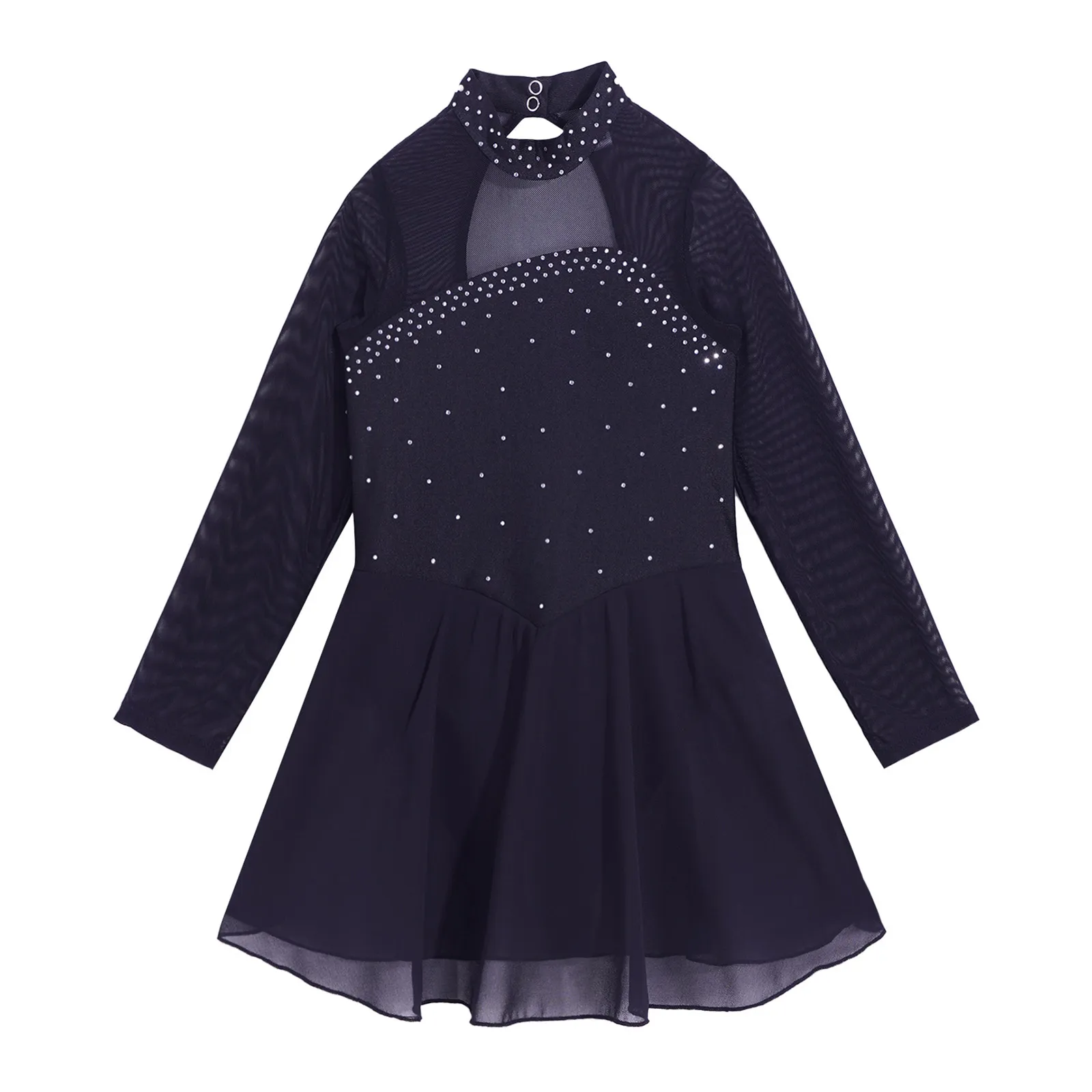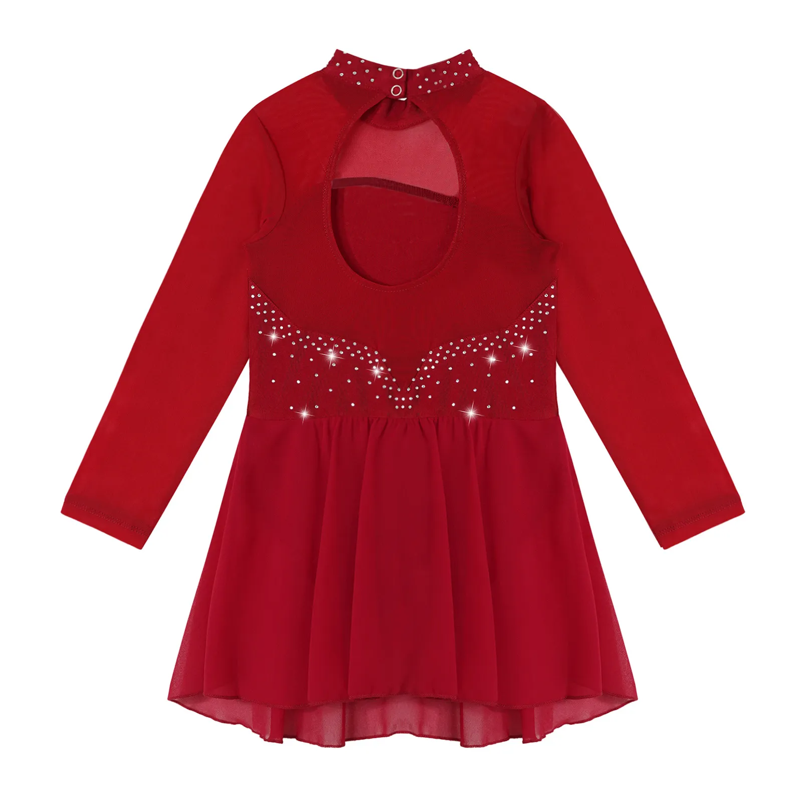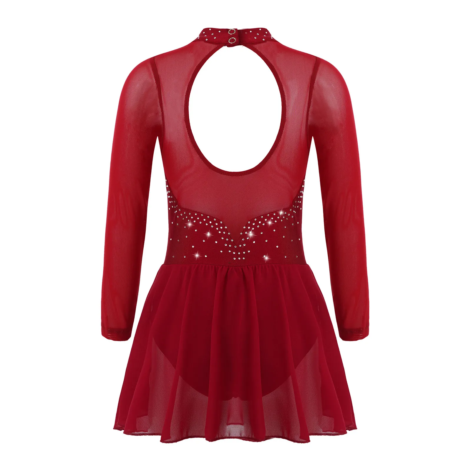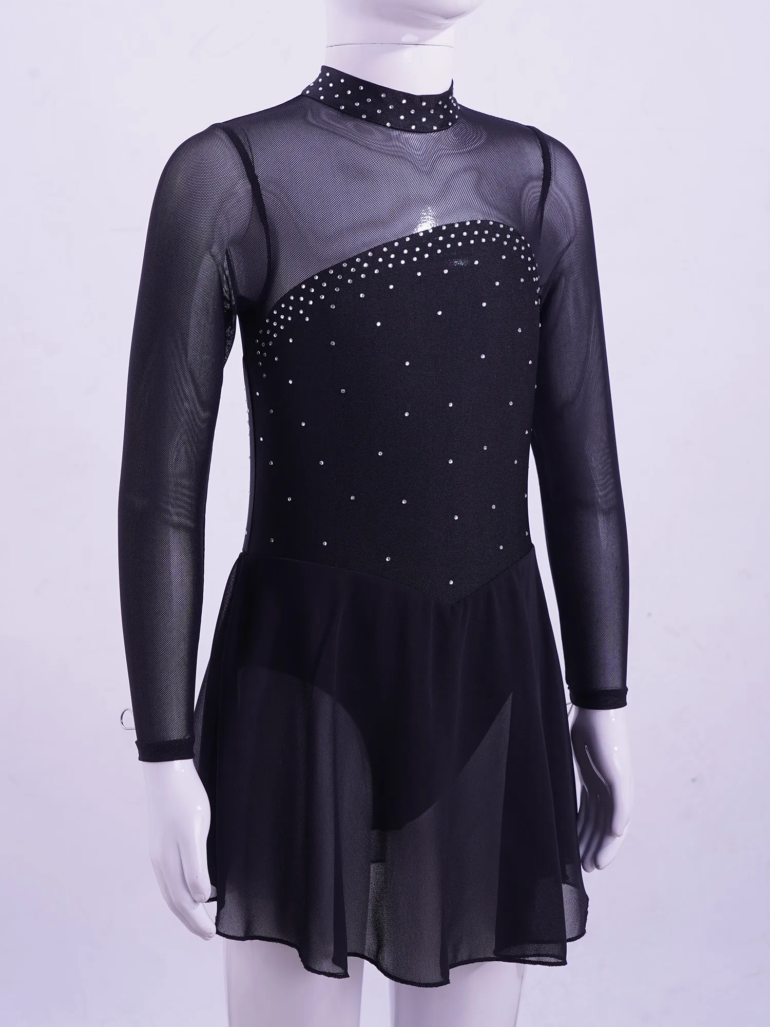 Gymnastics Leotard Ballet Tights Latin Dance Performance Costume Long Sleeve Rhinestone Figure Skating Dress