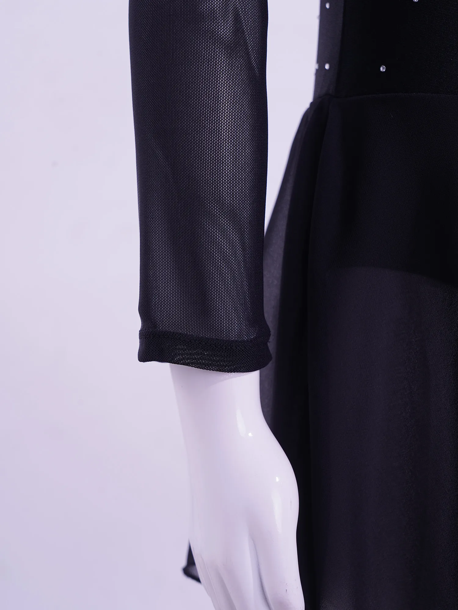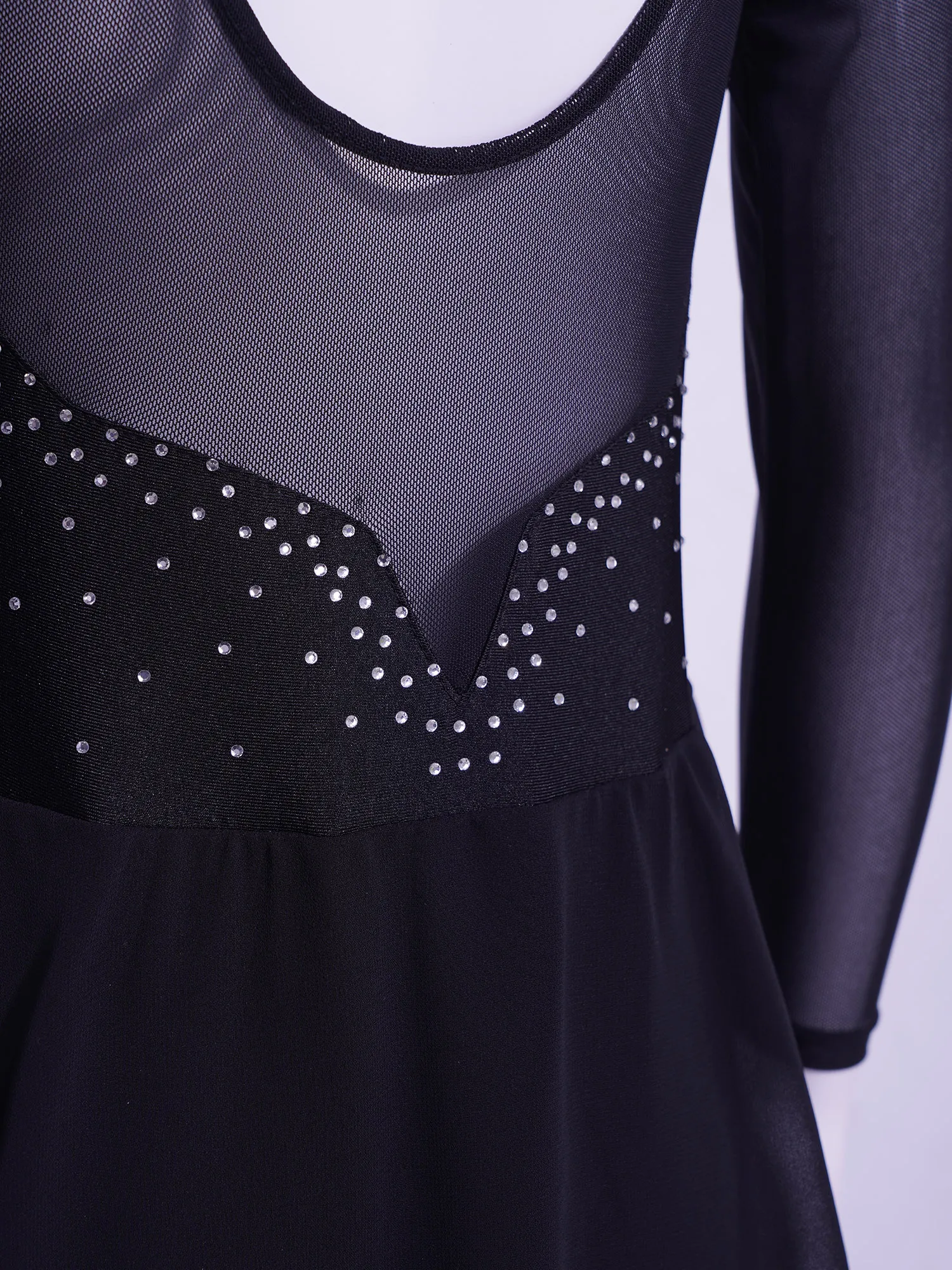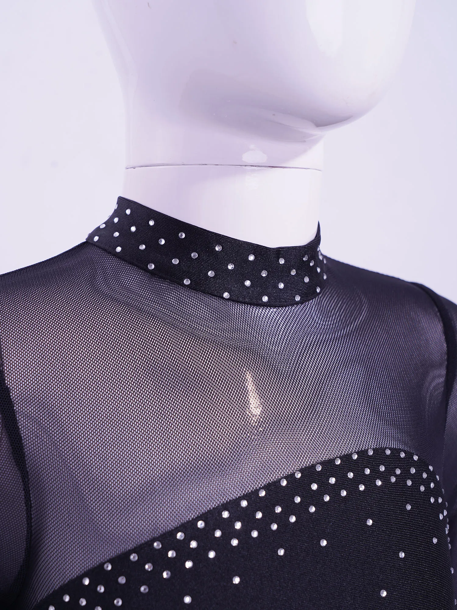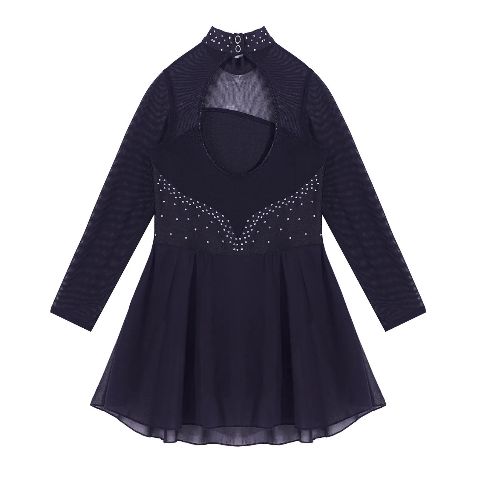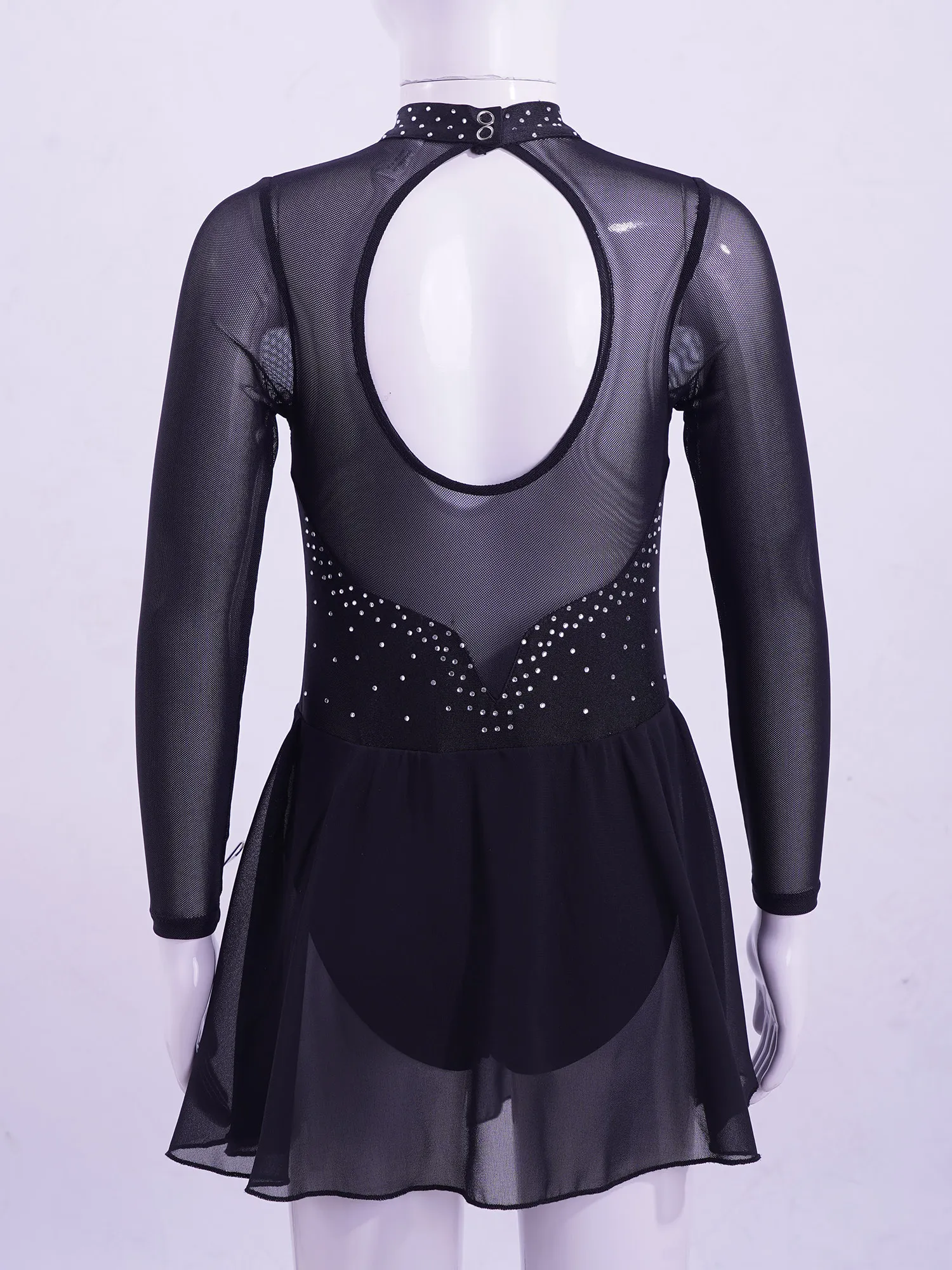 Gymnastics Leotard Ballet Tights Latin Dance Performance Costume Long Sleeve Rhinestone Figure Skating Dress